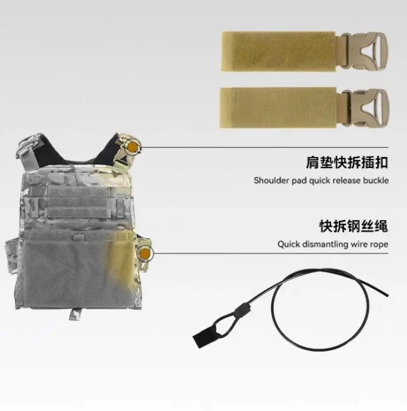 Hombrera con hebilla de liberación rápida/conexión AVS, cable de acero, cuerda de liberación rápida, accesorio de 3 bandas, chaleco táctico desmontable AVS