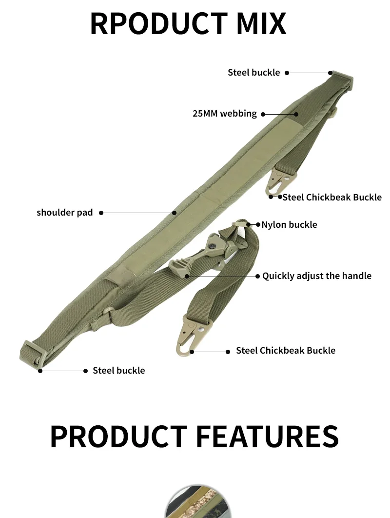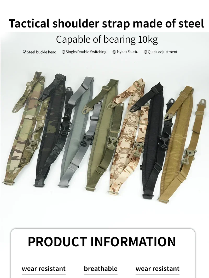 Hombreras tácticas de acero de 2 puntos, accesorios de equipo de eslinga, correas ajustables para equipo de tiro, correas de hombro aceptables de 10kg