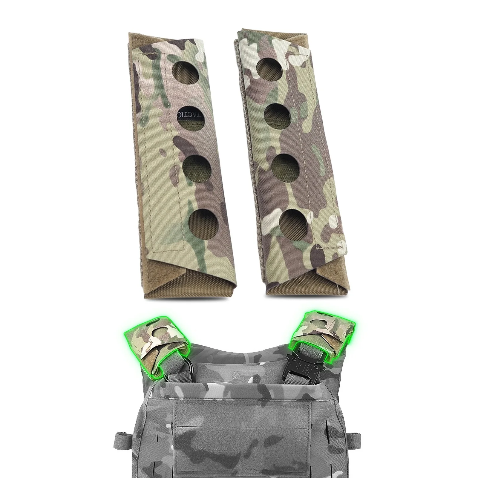 Las hombreras de este chaleco se adaptan a cualquier correa de hombro de correas hasta la mayoría, por ejemplo: FCS, FCPC, JPC, bolsos tipo bandolera o bolso de pesca, mochila, bolso para cámara, bandolera para guitarra, correas para cinturones de seguridad de automóvil, etc.