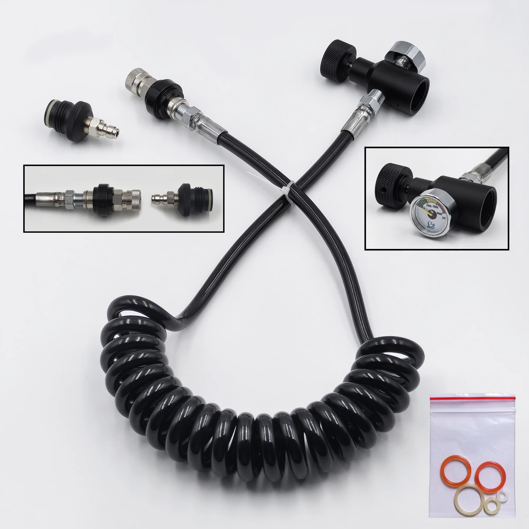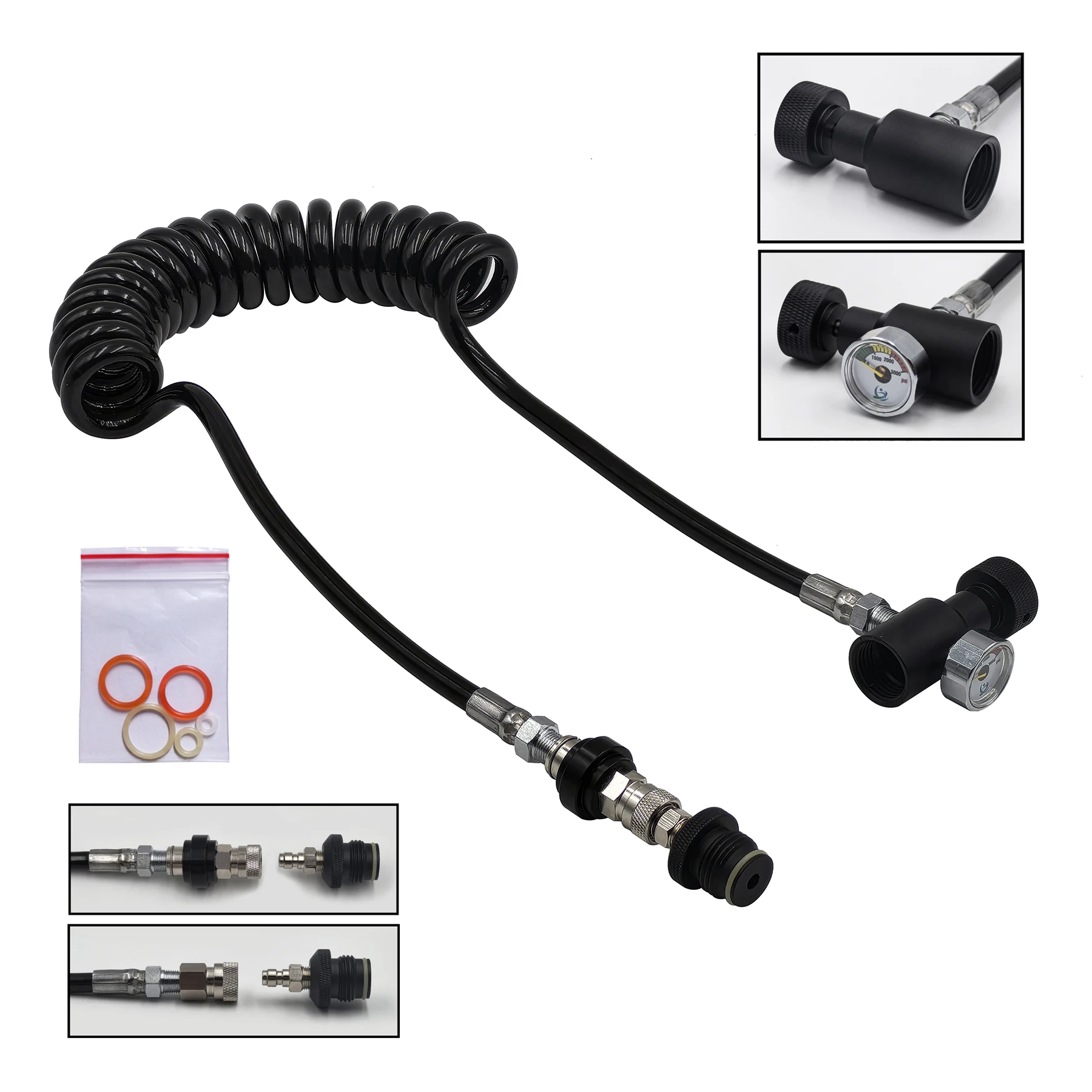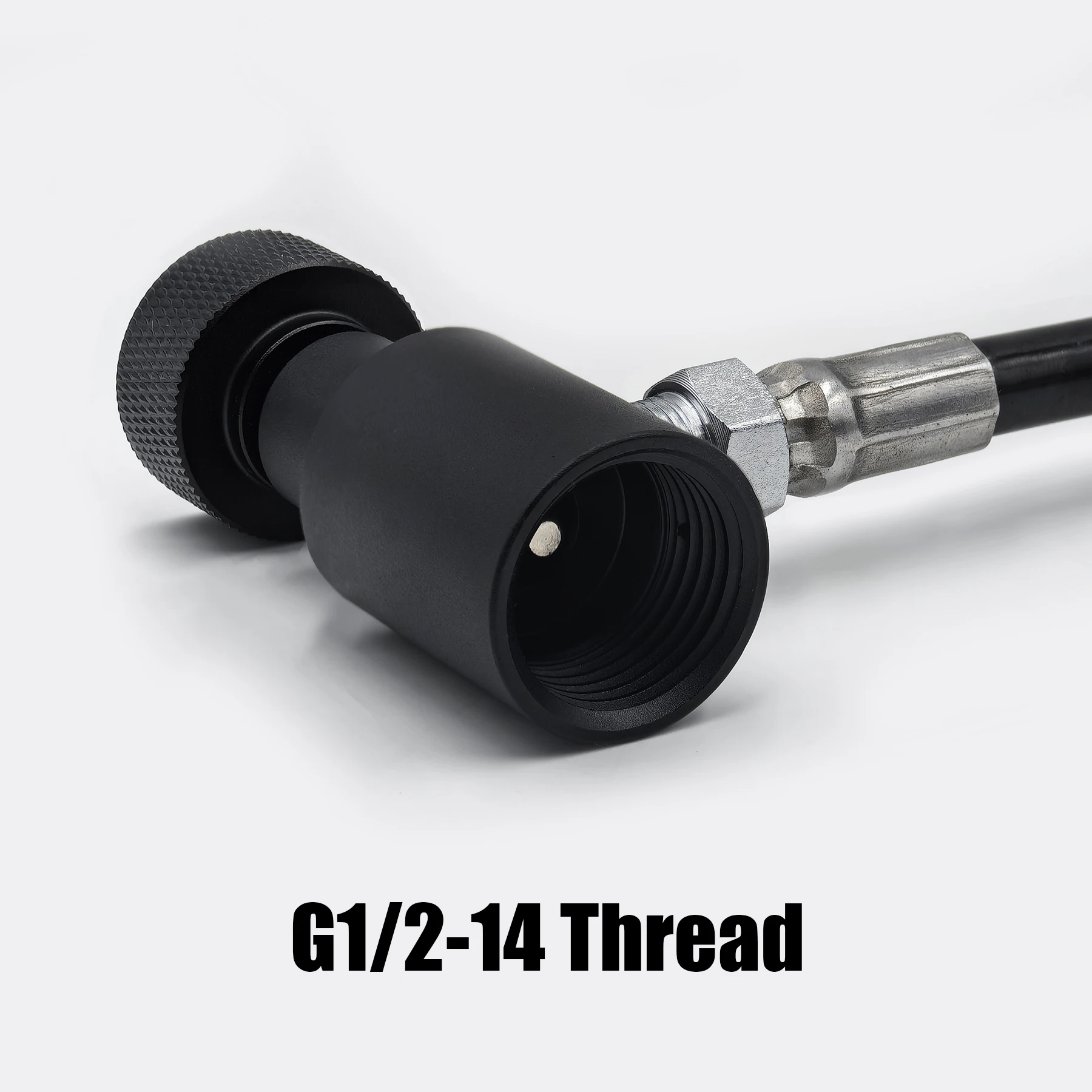 Adecuado para CO2, aire comprimido o tanque N2.El adaptador de llenado universal mejorado facilita el manejo y el reemplazo de piezas.