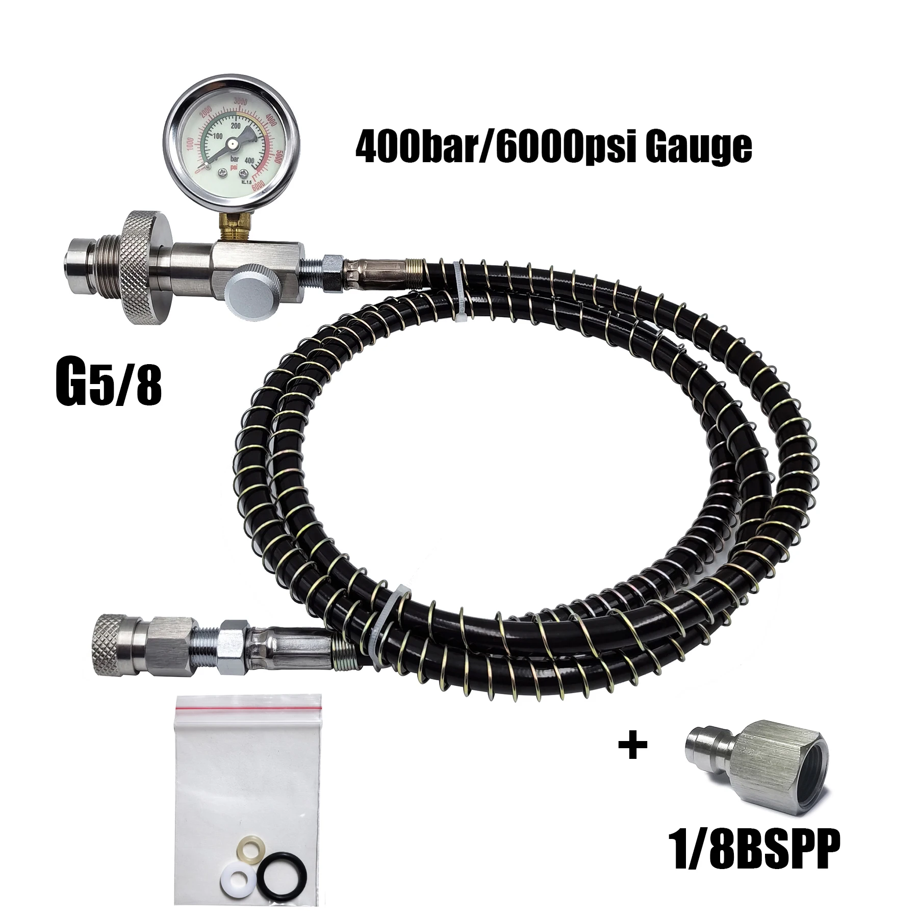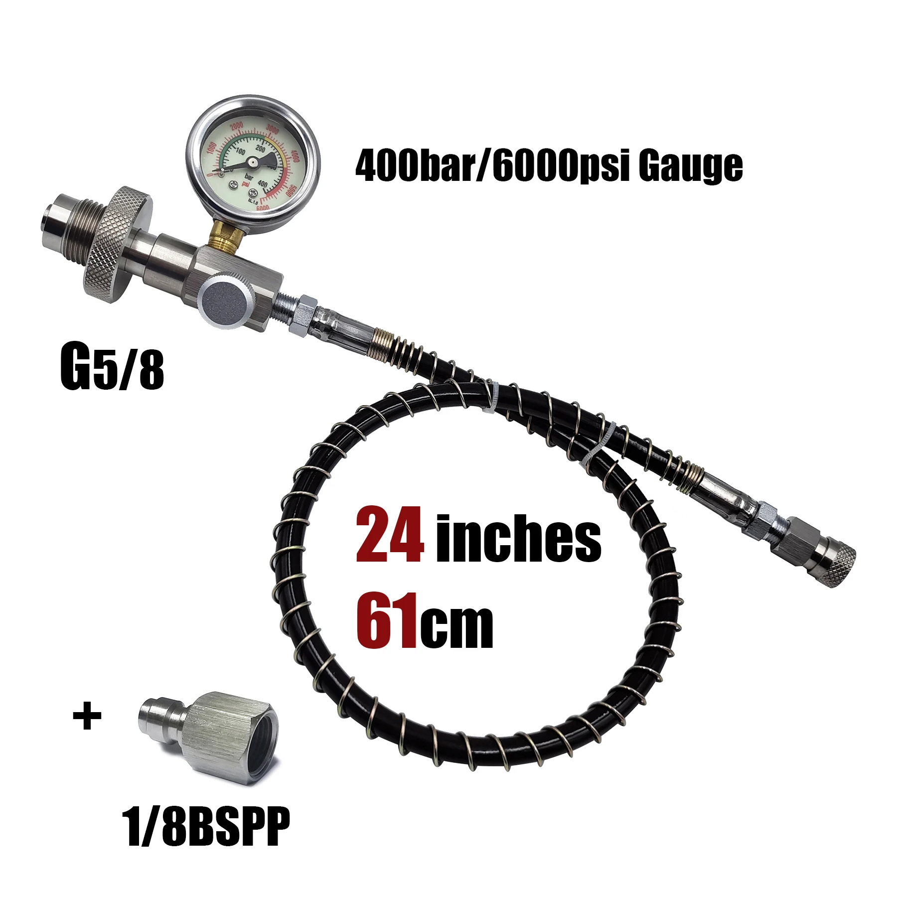 Adaptador de carga para buceo HPA, estación de llenado HP con manguera, calibre 6000 psi/400bar, conector DIN, tanque grande a botellas pequeñas