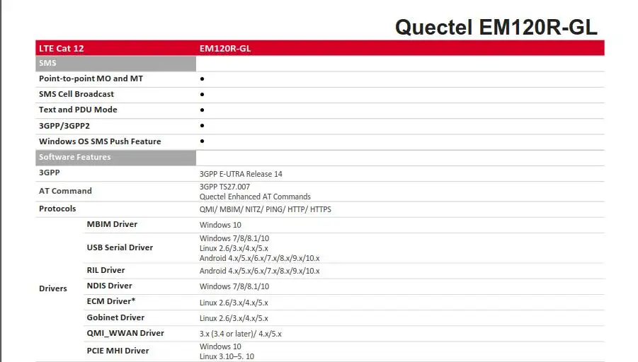 -Controlador QMI_WWAN: Linux 3.x( 3,4 o posterior)/4.x/ 5.x