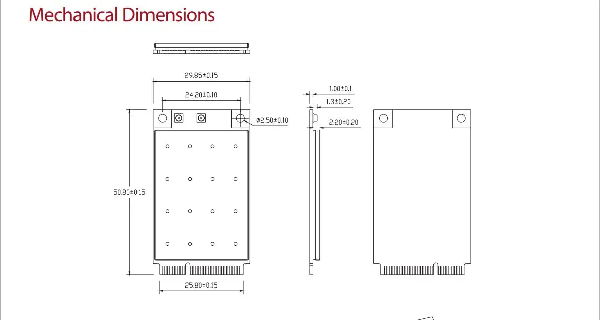 WLE600VX es un módulo WiFi 5 (802.11ac) seleccionable de doble banda (2,4 GHz o 5GHz). Se basa en la solución de radio de la serie QCA9882 'Peregrine' de Qualcomm. Esta es una solución 2T2R (2 × 2) MIMO de 2,4 GHz o 5GHz y está disponible tanto en grado comercial (QCA9882) como industrial (QCA9892). Además, WLE600VX presenta una dimensión estándar de 30x51mm, lo que hace que la integración de hardware sea lo más fluida posible. Con 2 flujos espaciales, WLE600VX es capaz de alcanzar hasta 867Mbps con la disponibilidad de un ancho de banda de 80MHz.