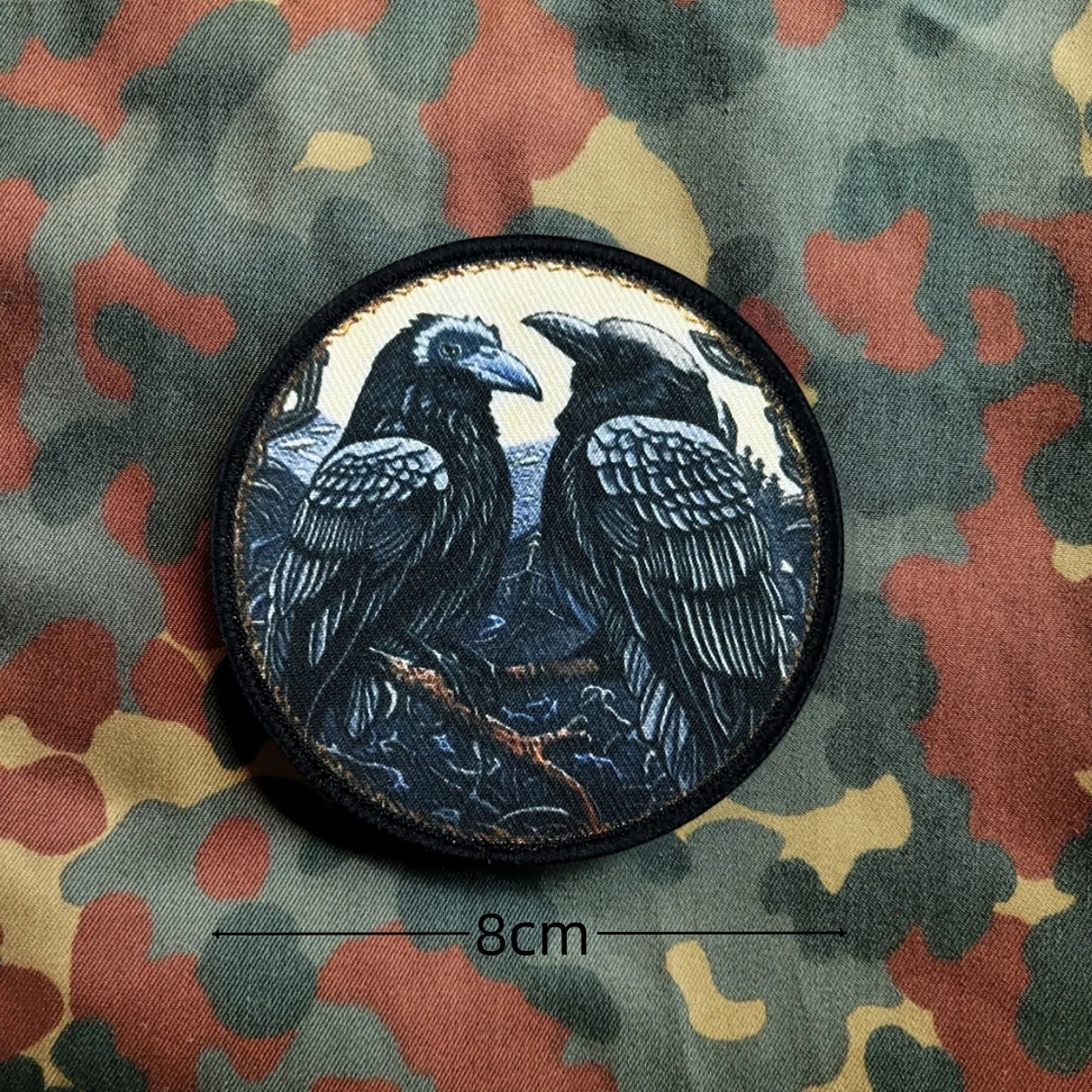 Hugin y Munin-Parche de insignia de moral Ravens de Odin, brazalete militar táctico, parches de gancho y bucle impresos para pegatina de mochila