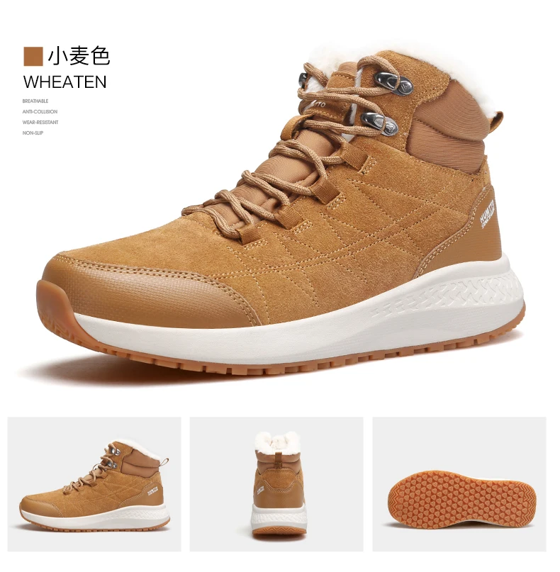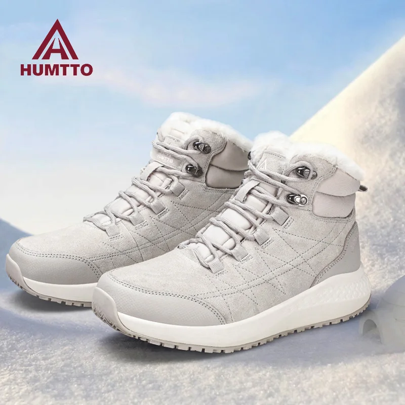 HUMTTO Botas de nieve para exteriores, zapatos de senderismo de piel de vaca con zapatillas deportivas de piel, zapatillas de invierno impermeables para acampar y cazar, resistentes al frío