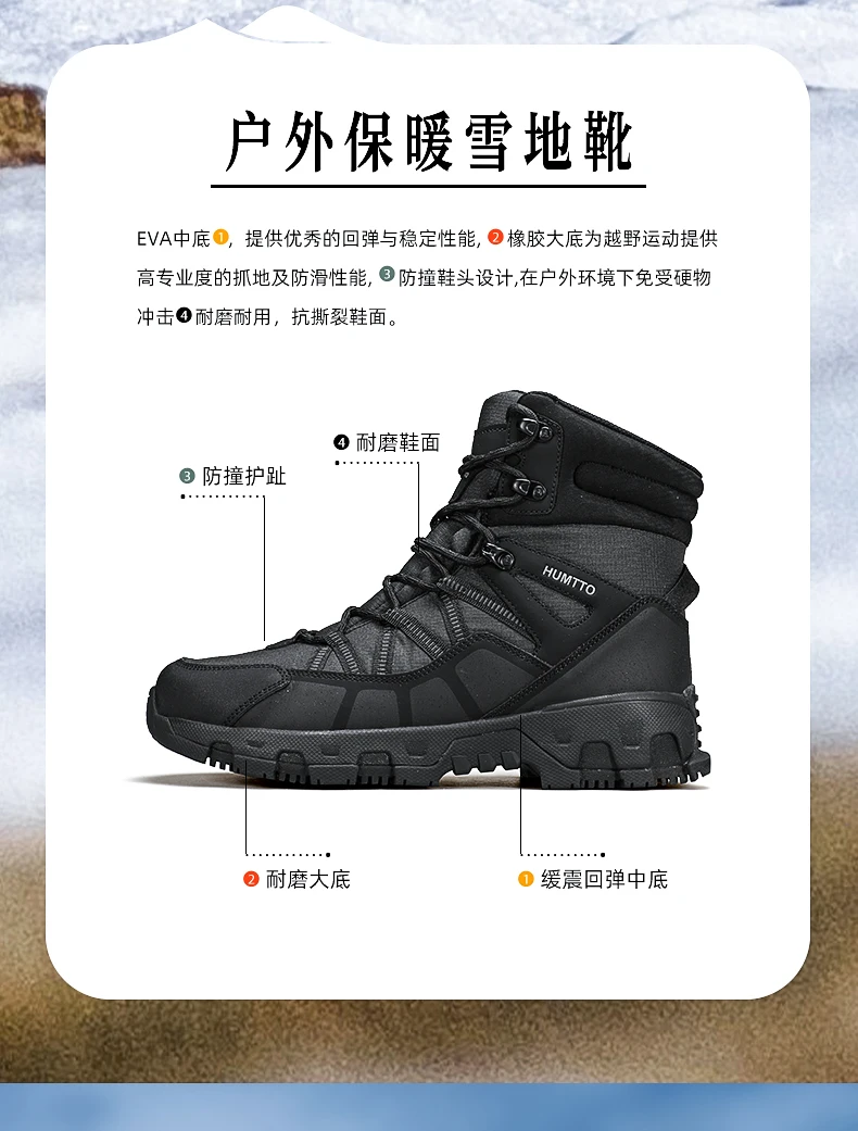 HUMTTO-zapatos de nieve al aire libre para hombre y mujer, botas de esquí cálidas de lana de alta calidad, impermeables, para senderismo, invierno, 2024