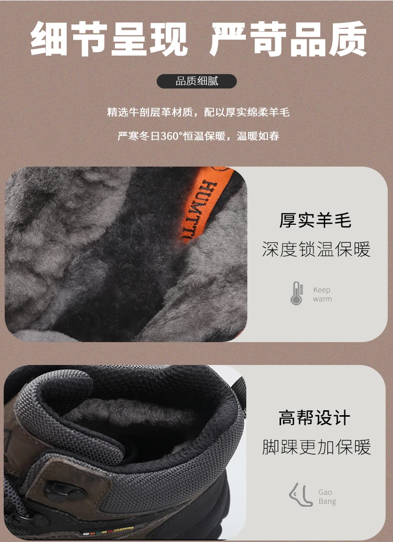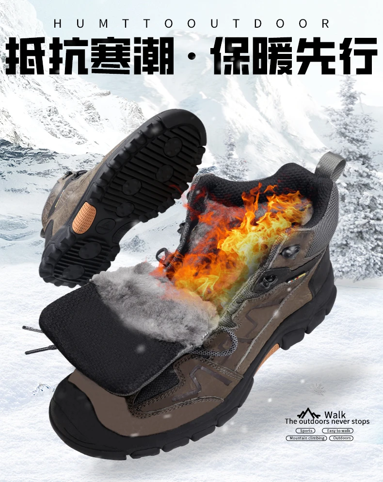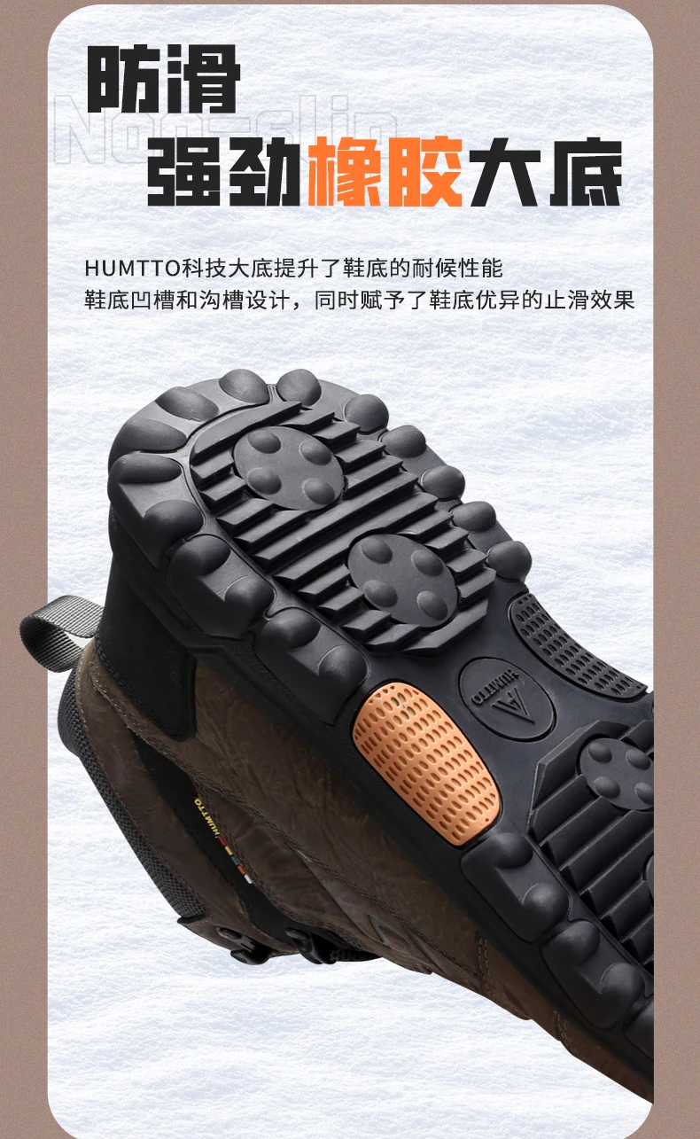HUMTTO-zapatos de senderismo al aire libre de piel de vaca, botas de invierno para hombre, botas tácticas de escalada impermeables, zapatillas de trekking, zapatos de nieve de felpa