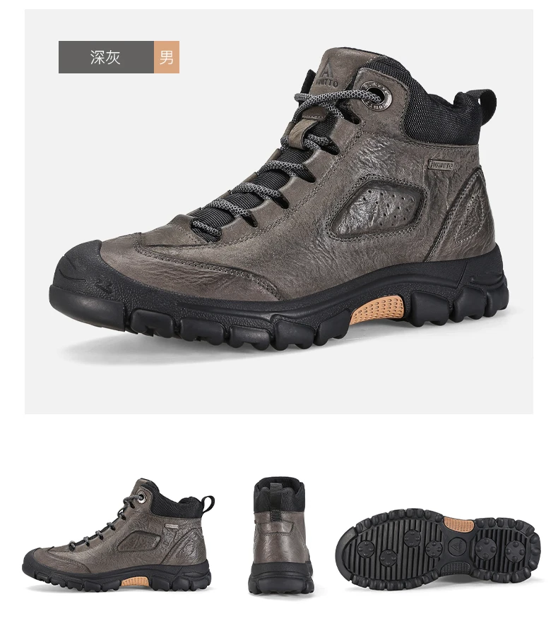 HUMTTO-zapatos de senderismo al aire libre para hombre, botas de invierno impermeables de cuero de vaca, botas tácticas de escalada, zapatillas de trekking de cuero para mujer