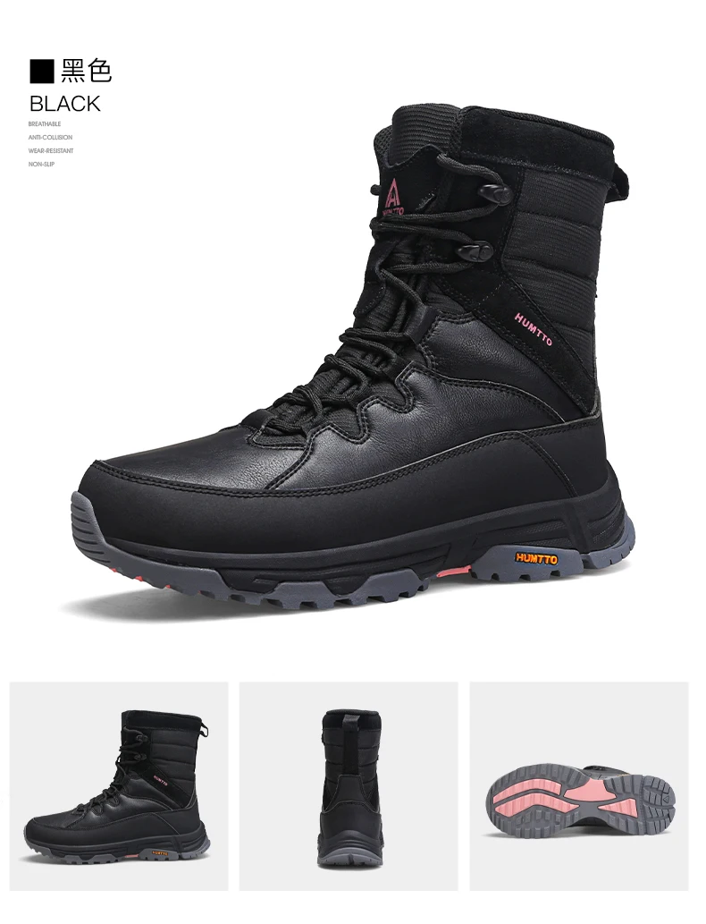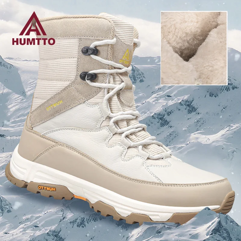 HUMTTO-zapatos de senderismo de alta calidad para exteriores, zapatillas deportivas con piel, botas de nieve de invierno para hombre, zapatillas impermeables para acampar y cazar, resistentes al frío