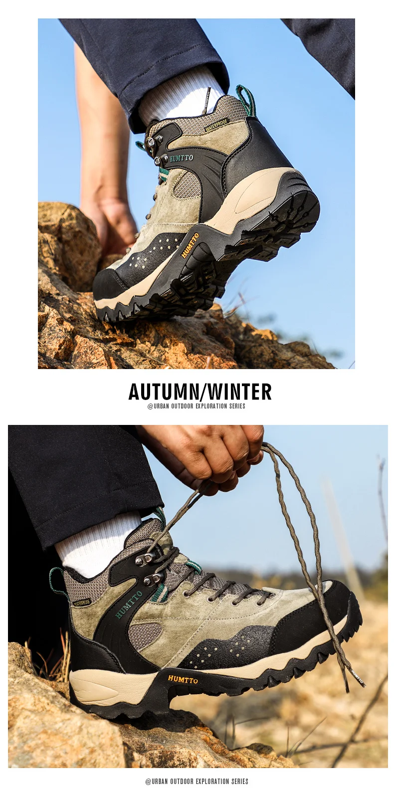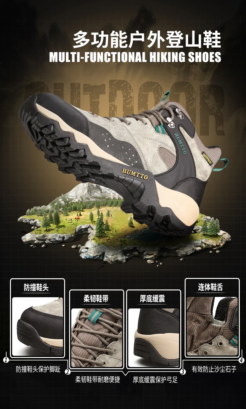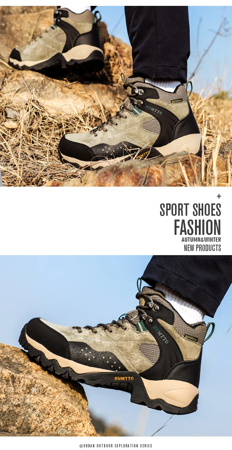 HUMTTO-zapatos de senderismo para hombre y mujer, zapatillas de deporte al aire libre, botas de caza de cuero impermeables, botines tácticos de senderismo, botas de nieve