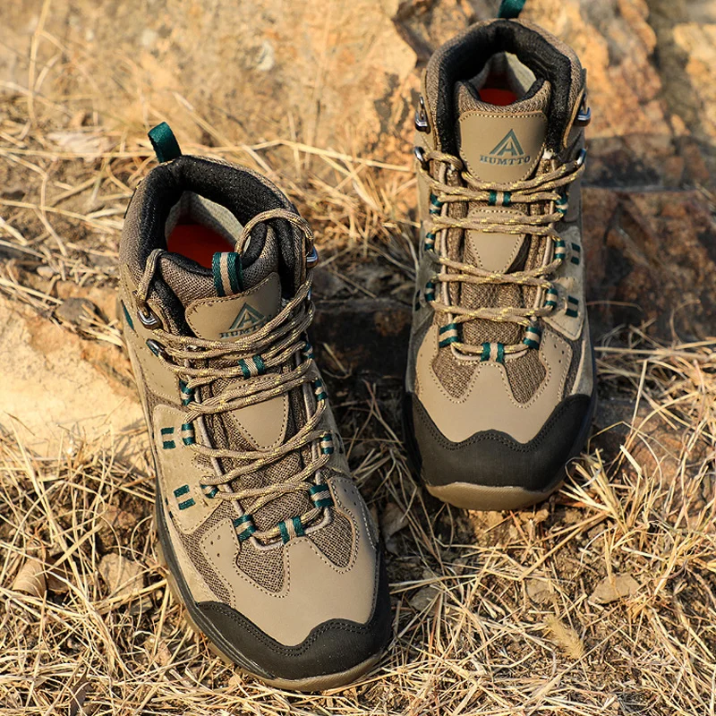 HUMTTO-zapatos de senderismo para hombre y mujer, zapatillas deportivas para exteriores, zapatos de caza de cuero impermeables, botas de nieve tácticas hasta el tobillo para senderismo