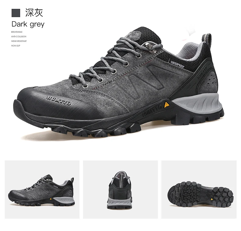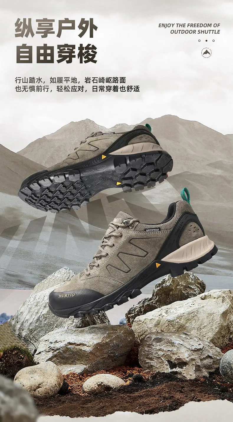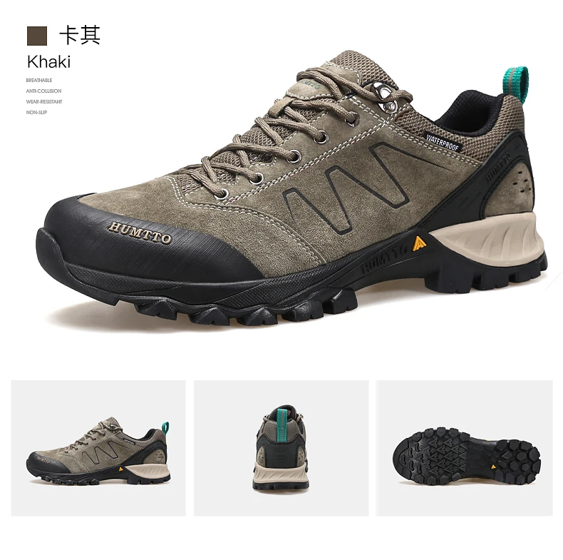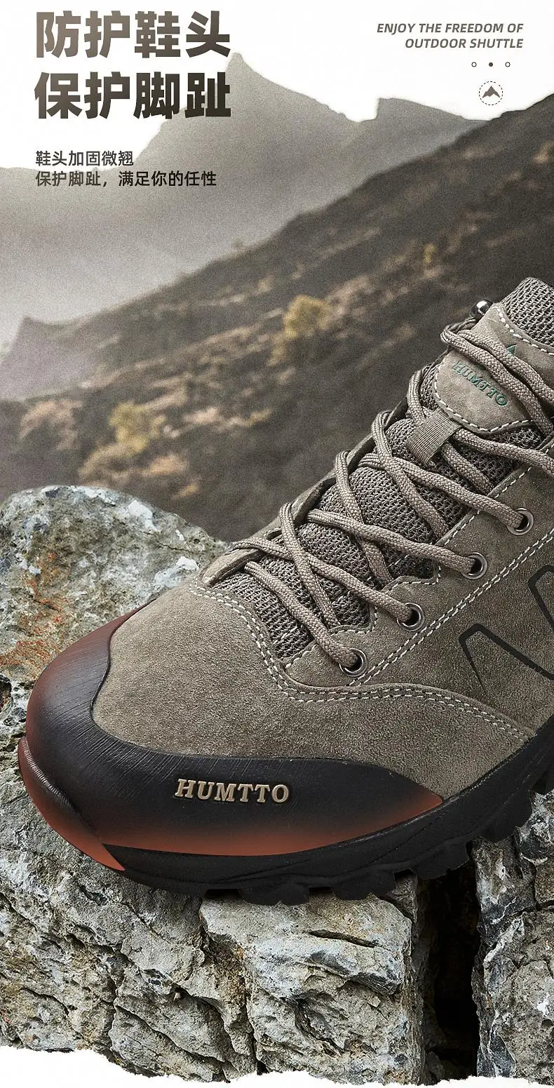 HUMTTO-zapatos de senderismo de piel de vaca para hombre, botas de caza para hombre, zapatillas de deporte para exteriores, antideslizantes, resistentes al desgaste, impermeables y transpirables