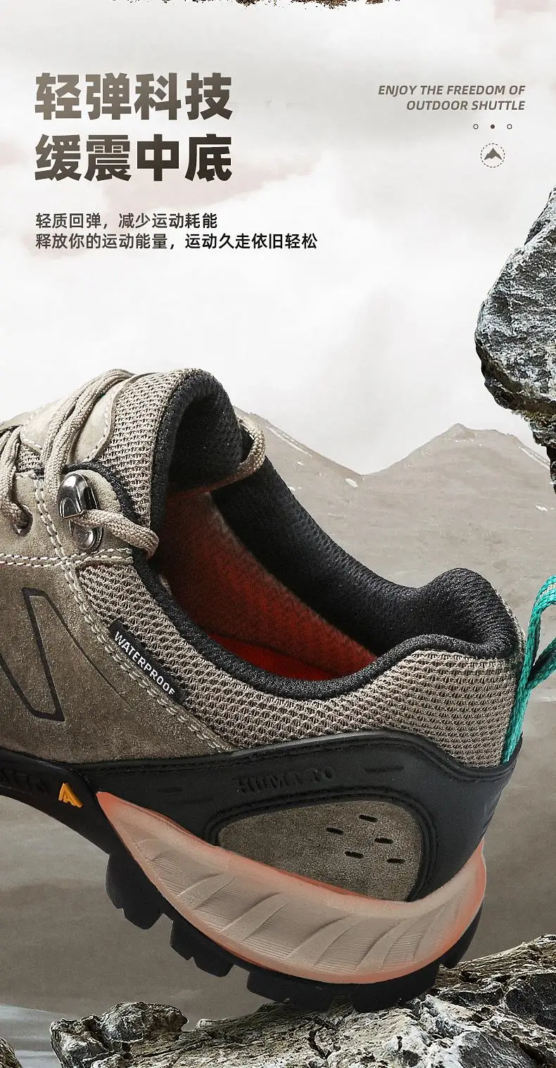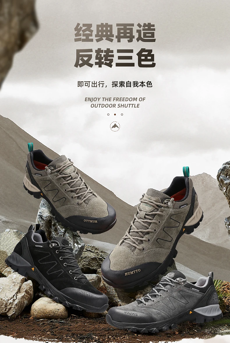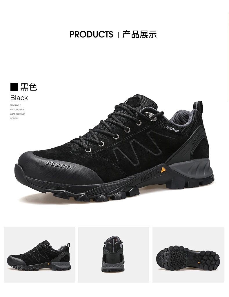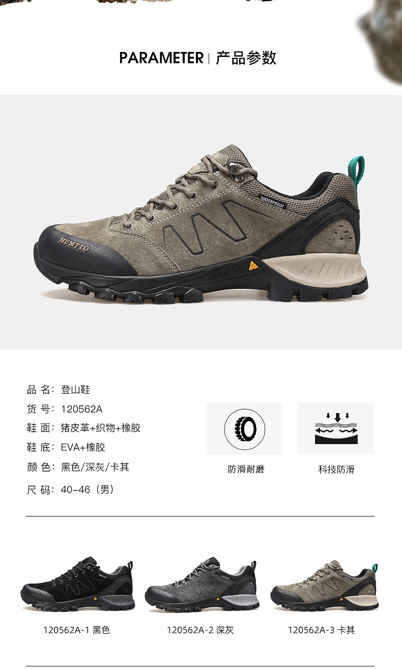 HUMTTO-zapatos de senderismo de piel de vaca para hombre, botas de caza para hombre, zapatillas de deporte para exteriores, antideslizantes, resistentes al desgaste, impermeables y transpirables