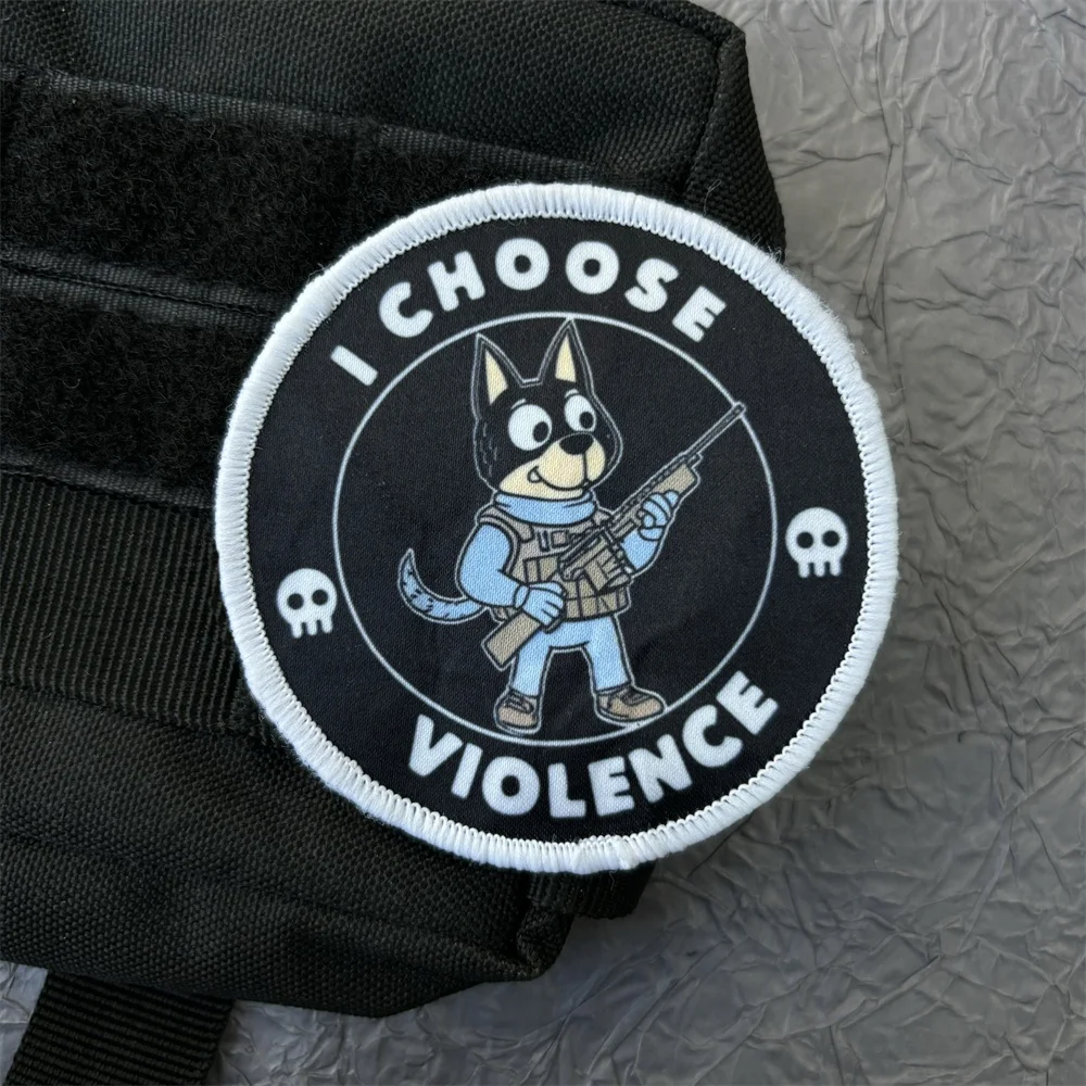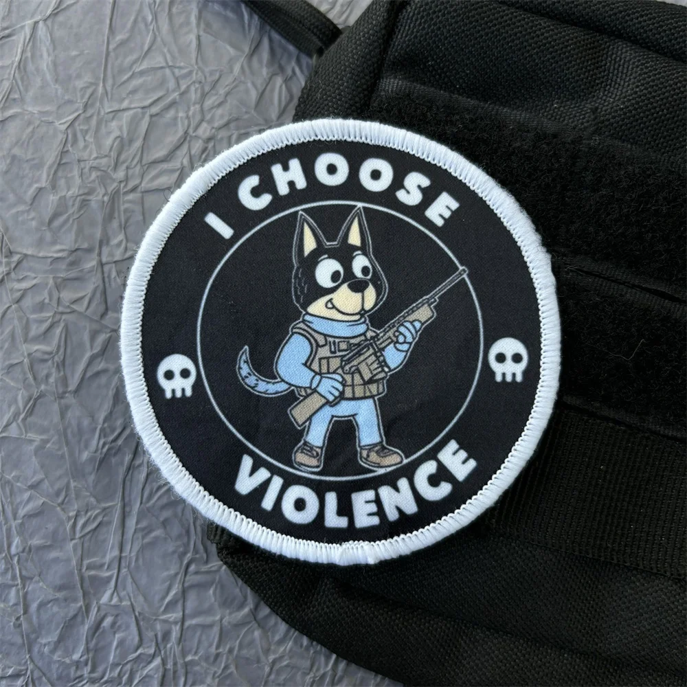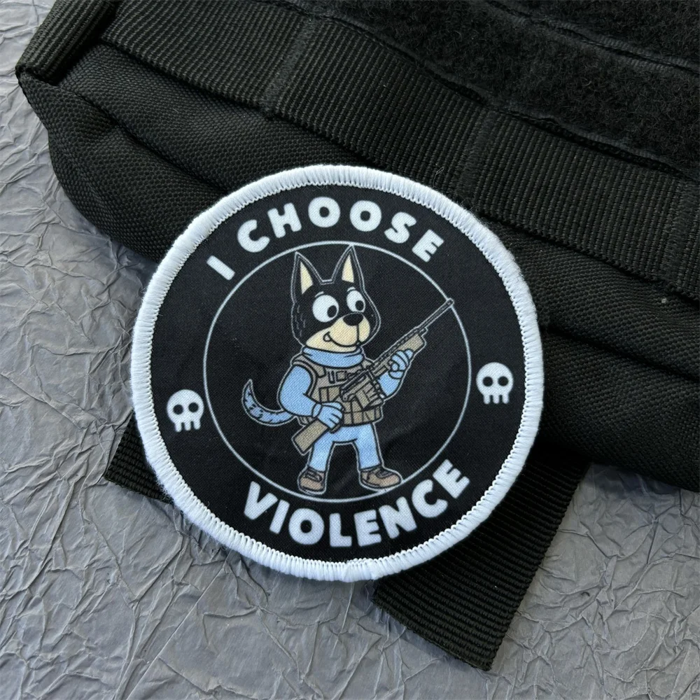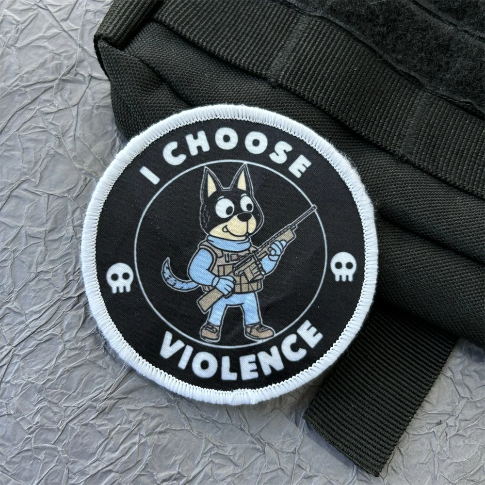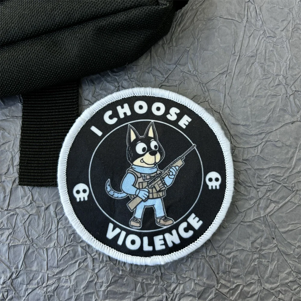 ELIJO VIOLENCIA Parche de perro en la ropa Insignia de moral de dibujos animados Pegatinas de impresión Parches de gancho y bucle Mochila