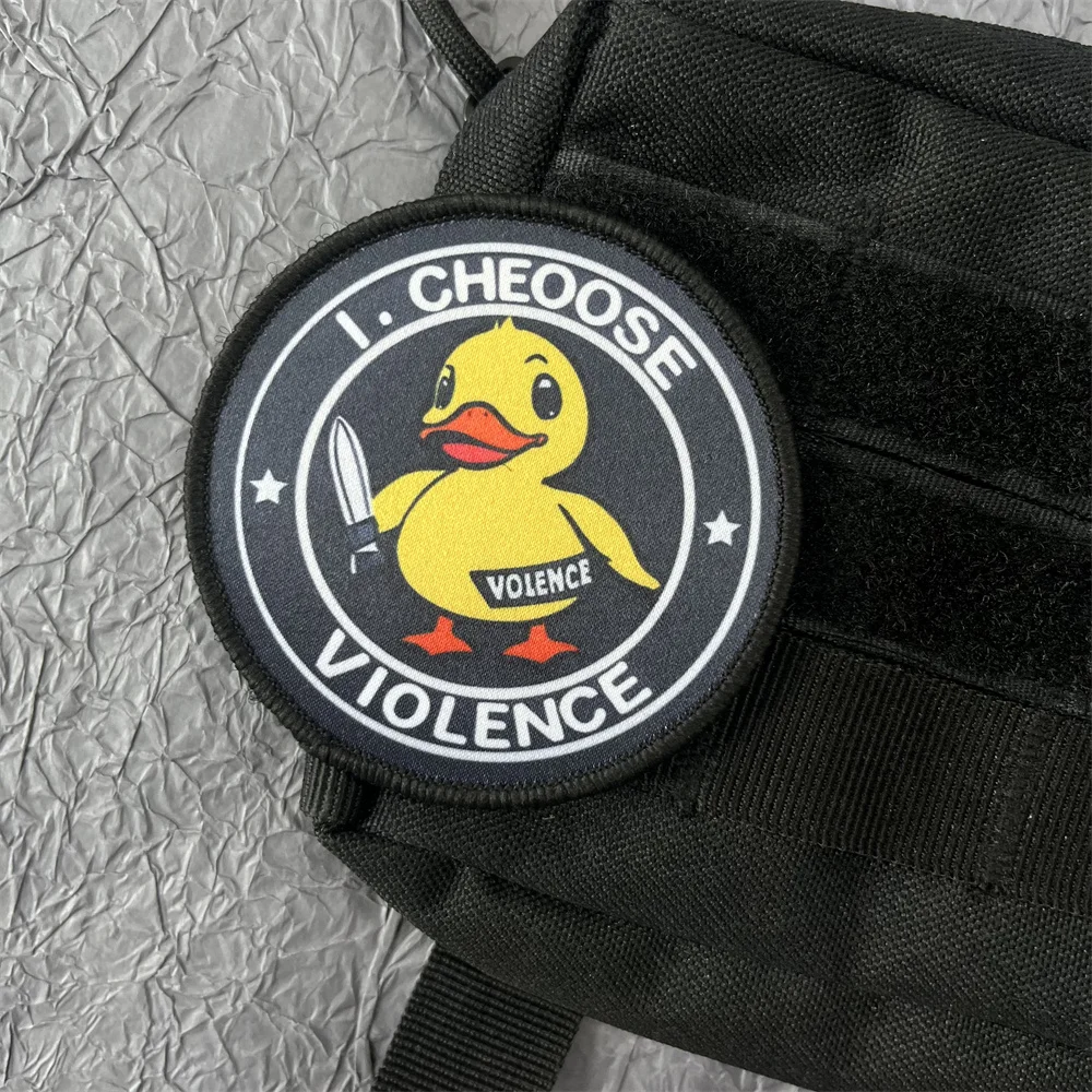 I CHOOSE VIOLENCE parche estampado en la ropa, insignias de pato de dibujos animados, parches de gancho y bucle, pegatinas de emblema de mochila
