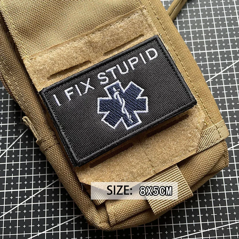 ** I FIX STUPID parches bordados en la ropa brazalete militar insignias de moral tácticas personalizadas en apliques de mochila MOQ:1 Tamaño: como muestra la imagen Parte posterior del parche: los parches bordados vienen con gancho y bucle en la parte posterior.