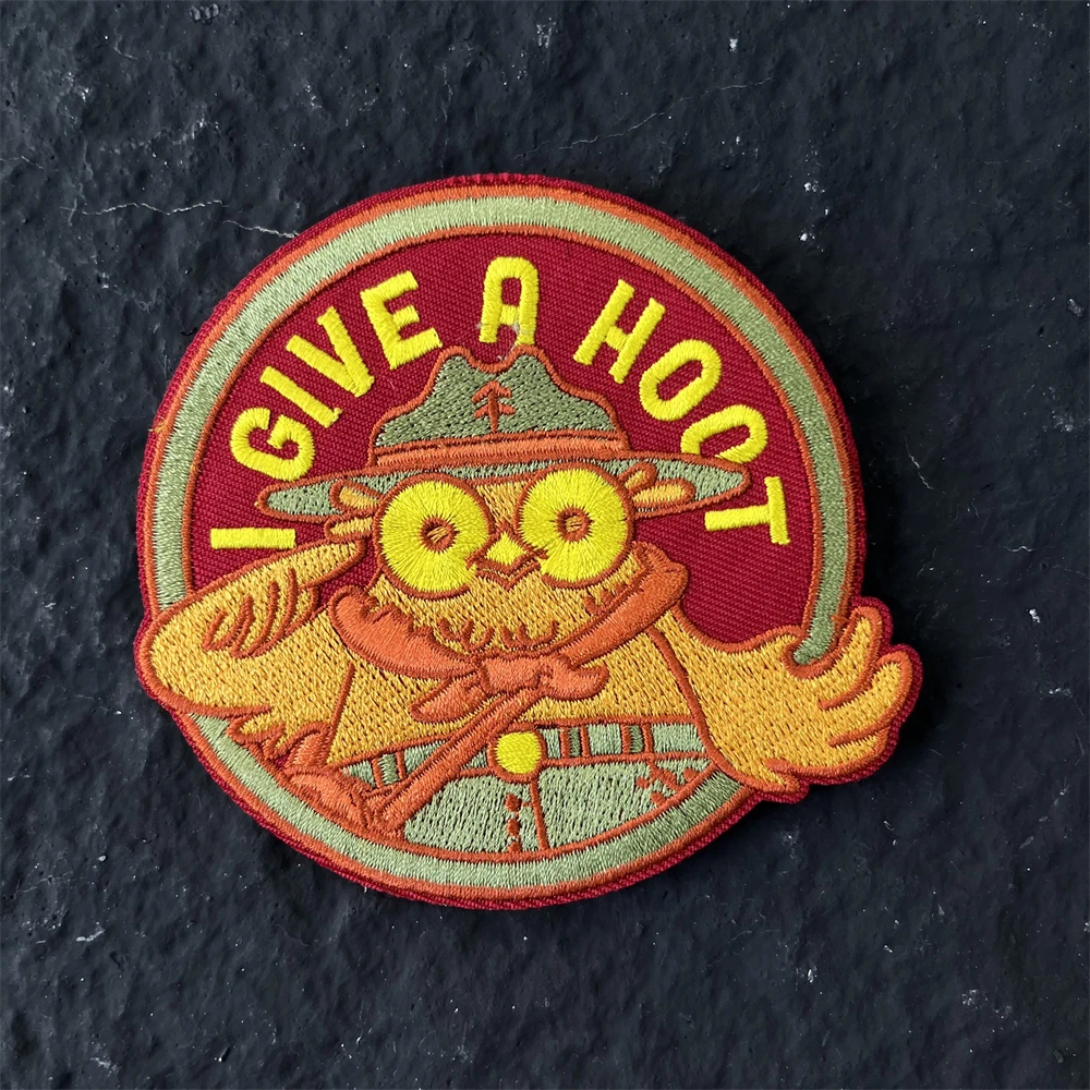 "DÉN UN HOOT" El pollo que lleva gafas bordado parches de gancho y bucle insignia táctica de moral brazalete militar mochila pegatina