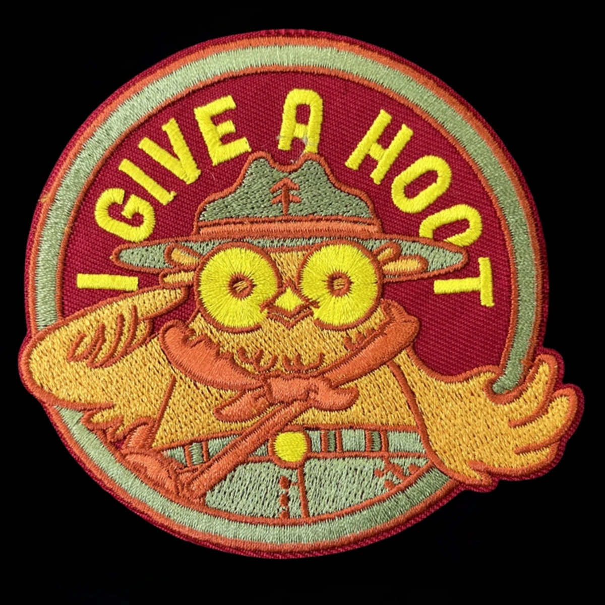 "DÉN UN HOOT" El pollo que lleva gafas bordado parches de gancho y bucle insignia táctica de moral brazalete militar mochila pegatina