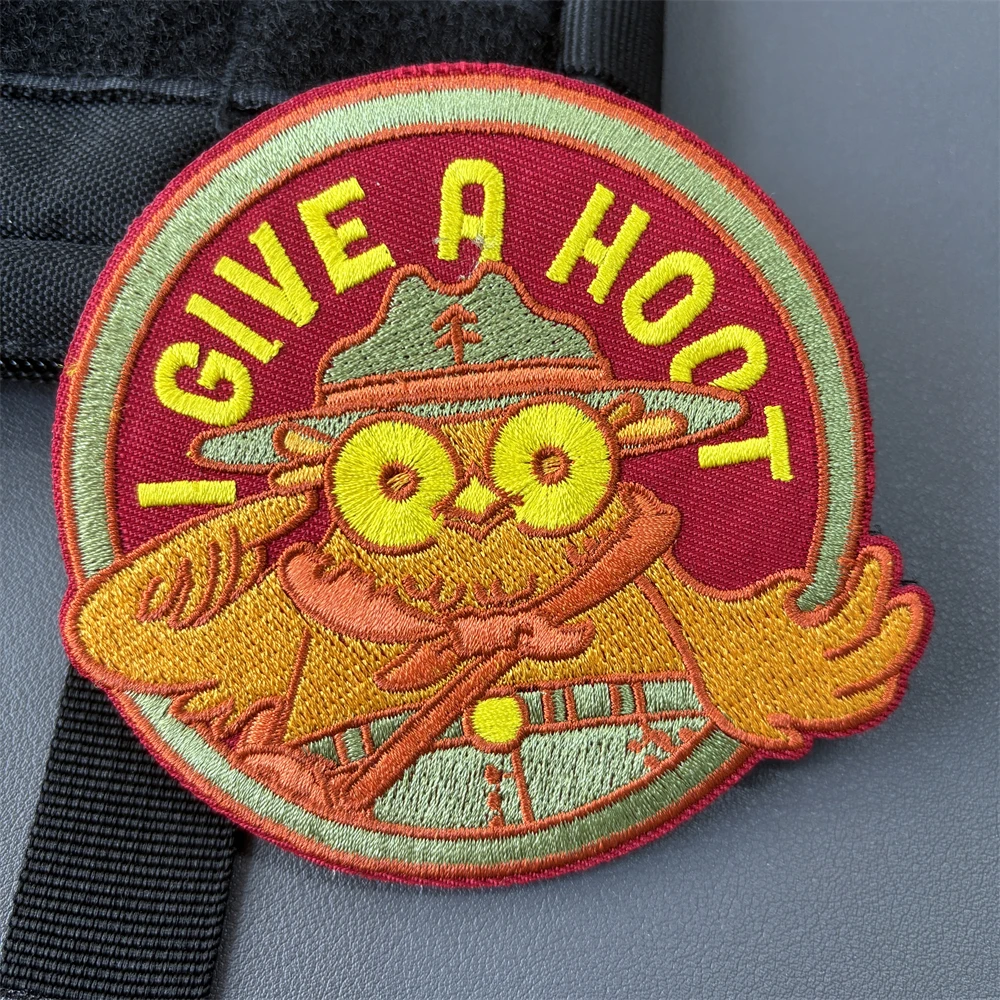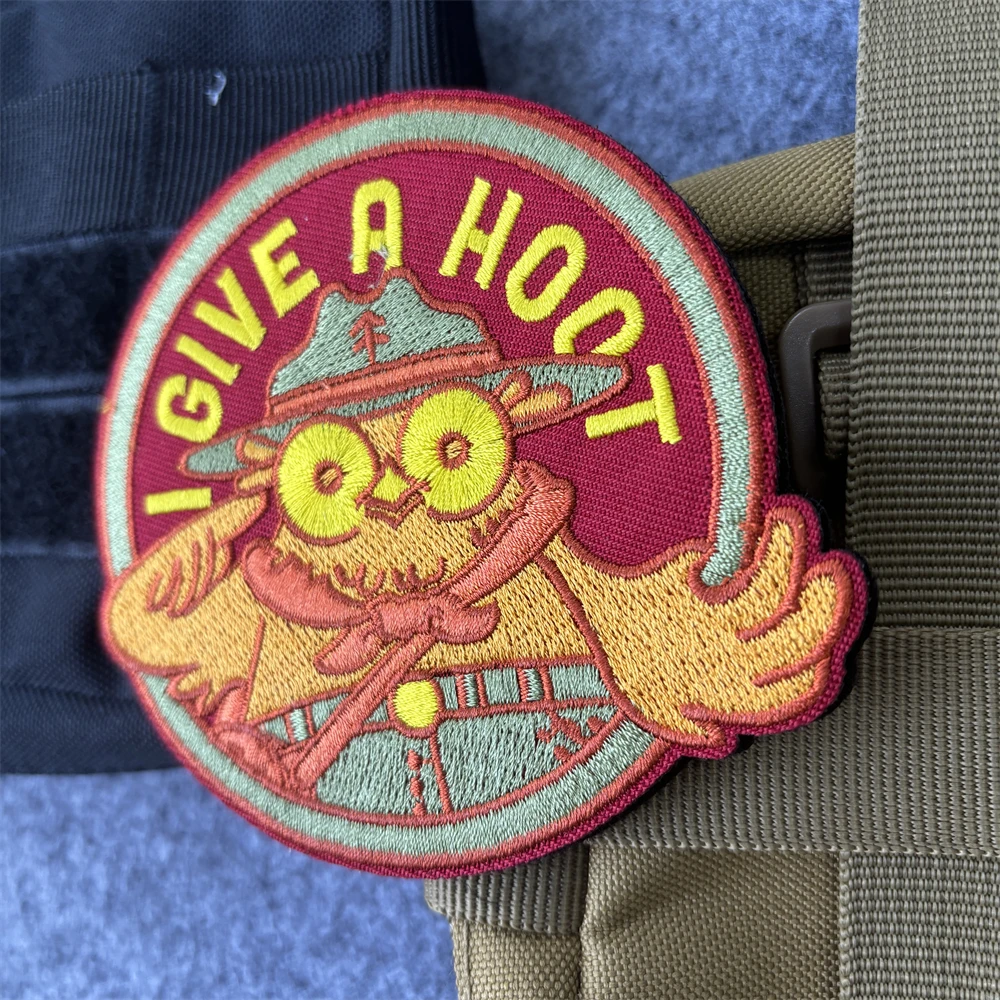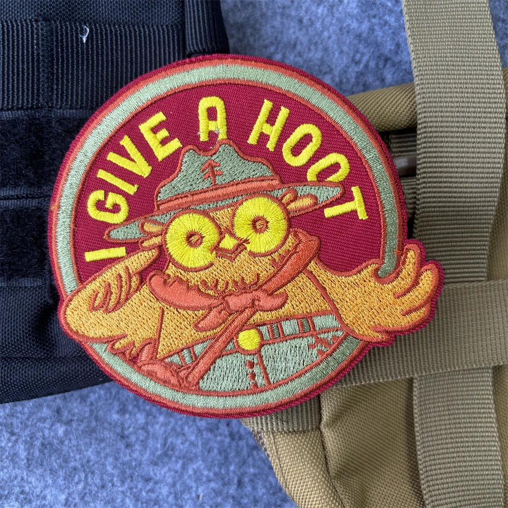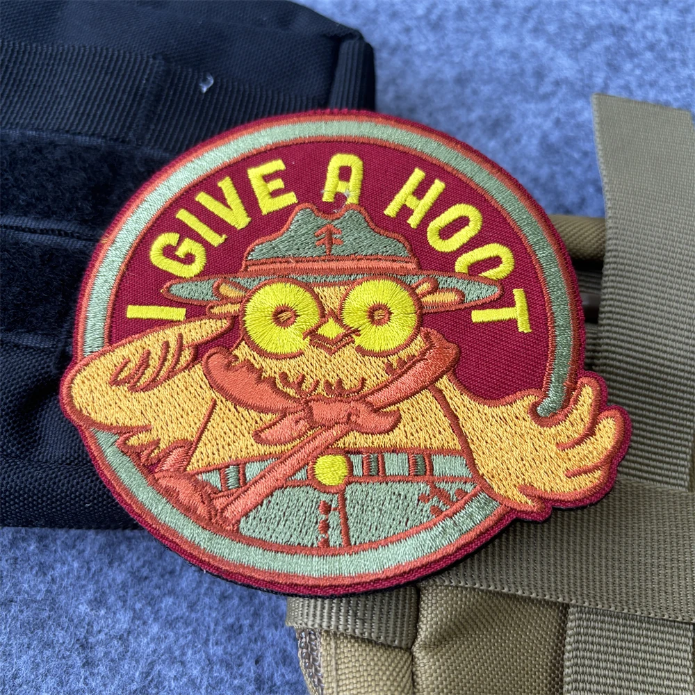 I Give A Hoot-parches bordados de pollo, bonito emblema de velcro, brazalete de búho personalizado, mochila militar, ropa, insignia de moral