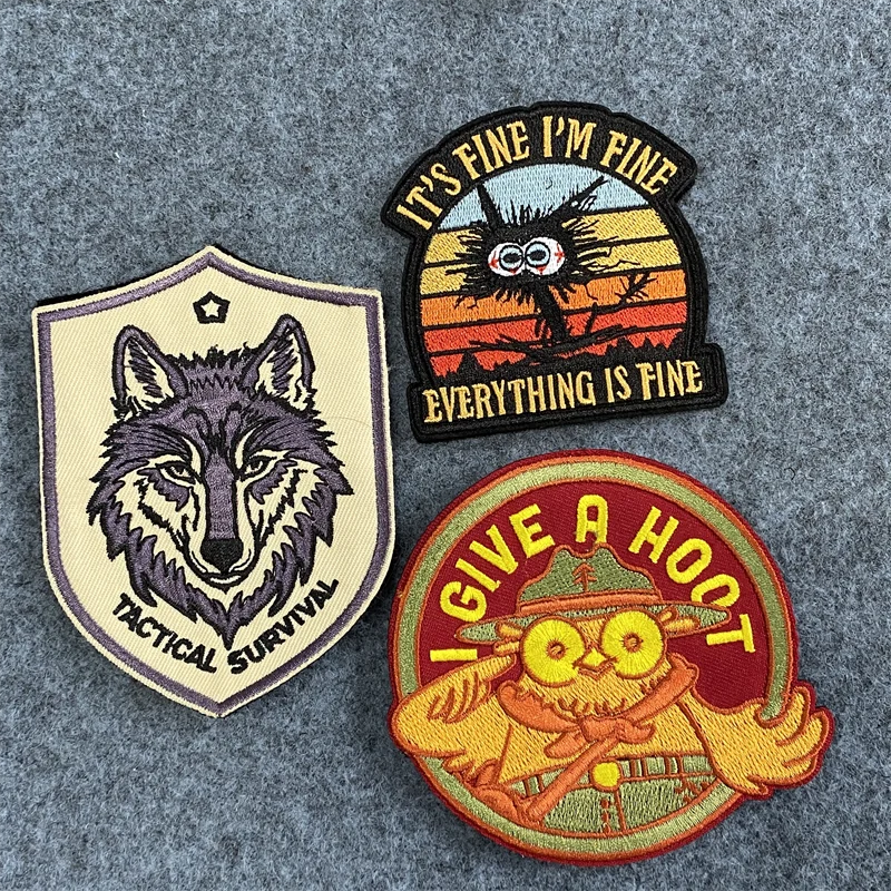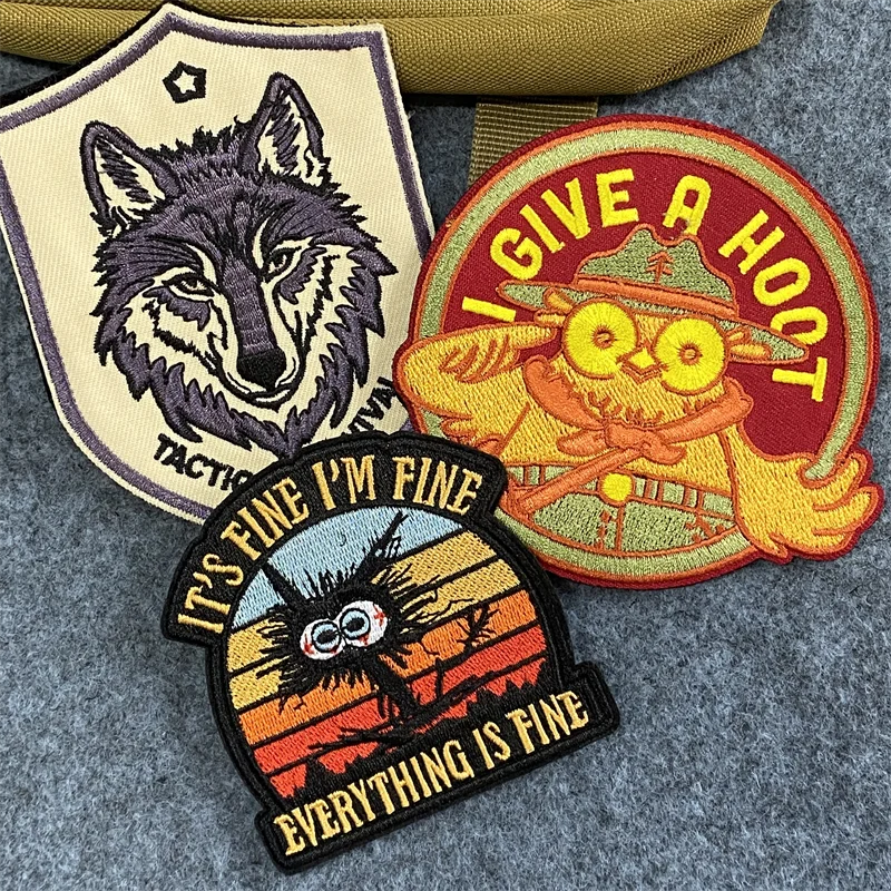 Te da a un hoot Rooster Parche bordado Loup Head Morale Insignia está bien, estoy bien, todo jinging es un fino parche adhesivo para mochila