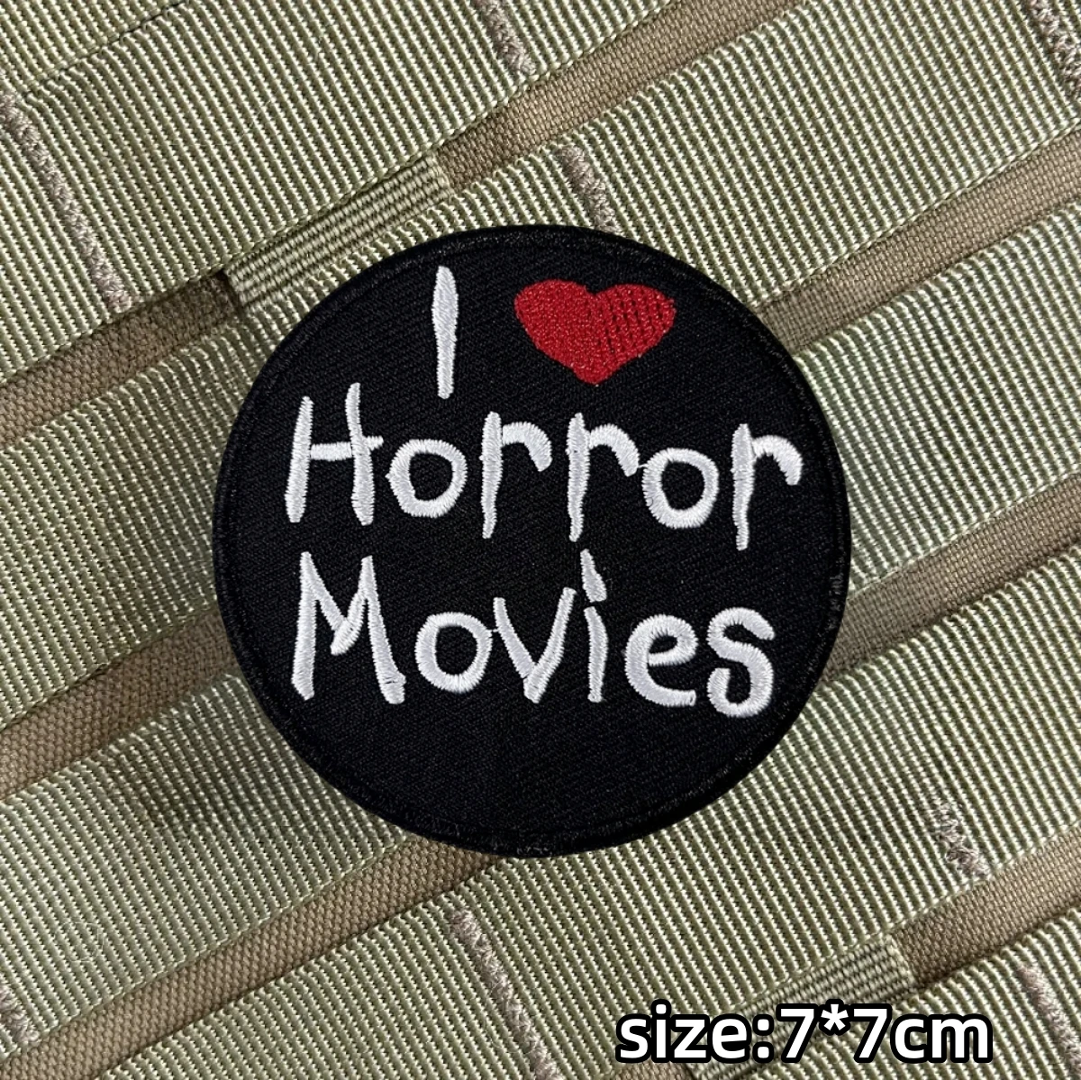 Me encanta la película de terror bordado parches de gancho y bucle táctico moral insignia mochila militar brazalete ropa mochila pegatinas