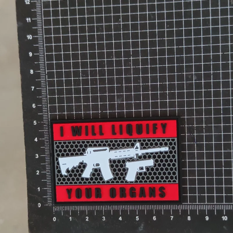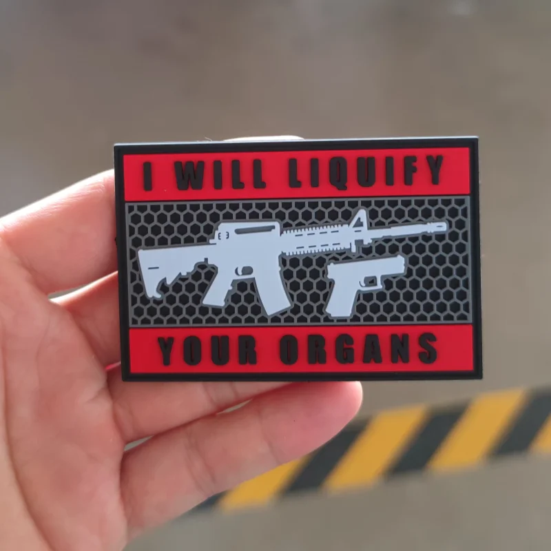 I Will Liquify You ORGANS parches tácticos de PVC, pegatinas de ropa de gancho y bucle, insignia de Moral de pistola militar, brazalete en mochila