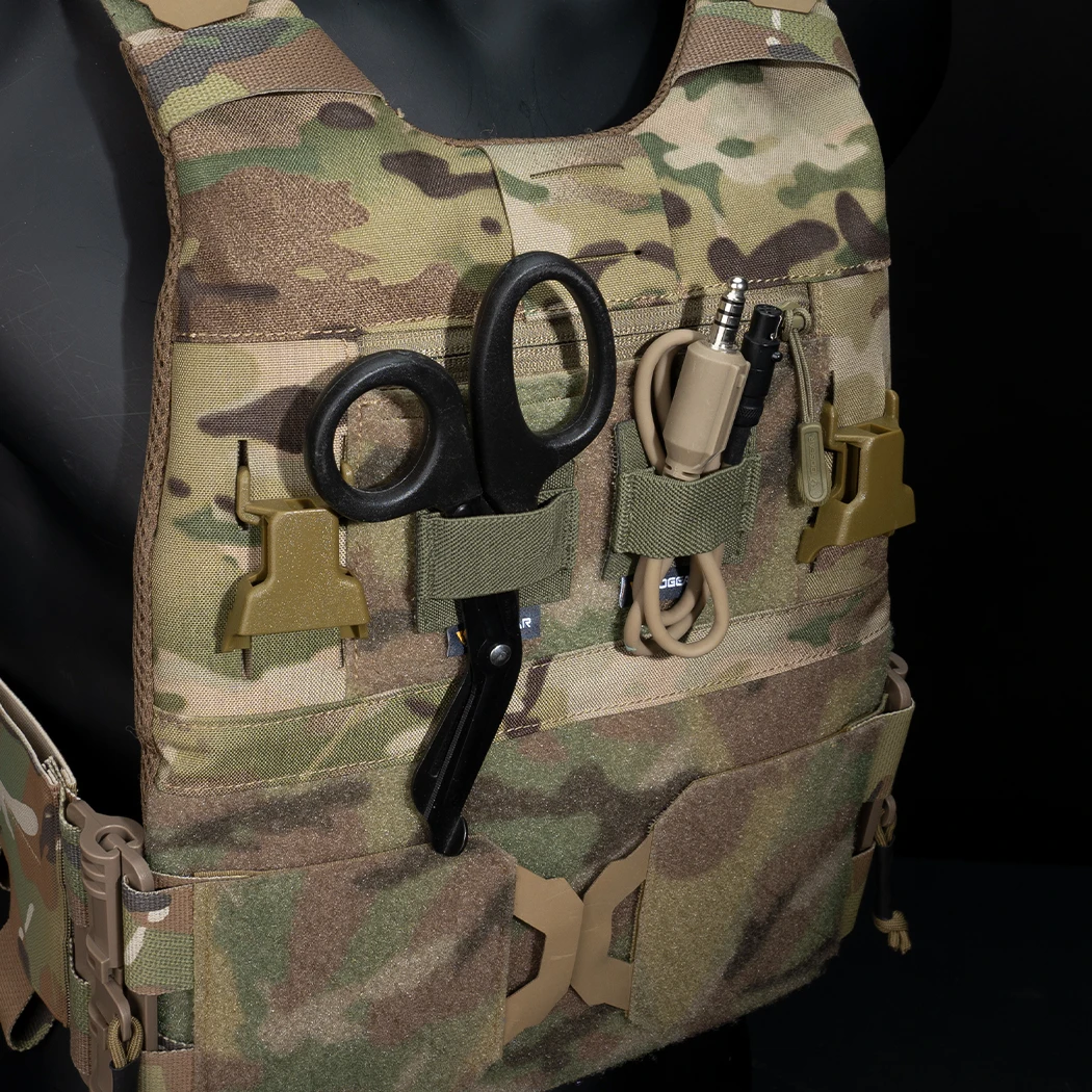 La cinta de almacenamiento del mazo de cables está hecha de tela compuesta, bandas elásticas y ganchos que pueden almacenar de manera más cómoda y ordenada equipos tácticos, cables y otros artículos, y mejorar la aplicabilidad.