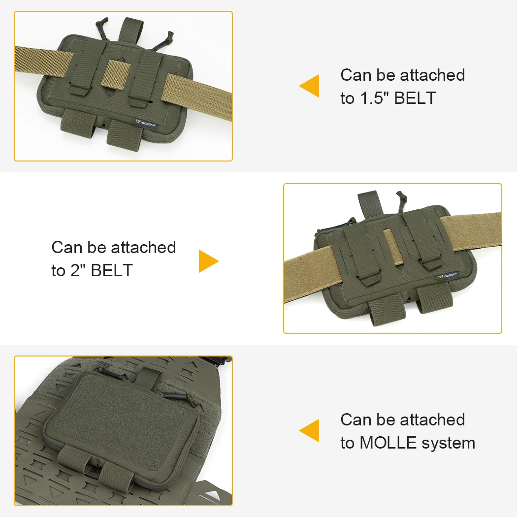 Con la banda elástica en la parte inferior, se pueden montar varios accesorios pequeños, como sable, torniquete, linterna.....