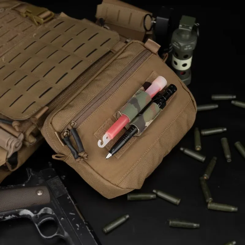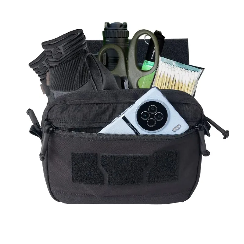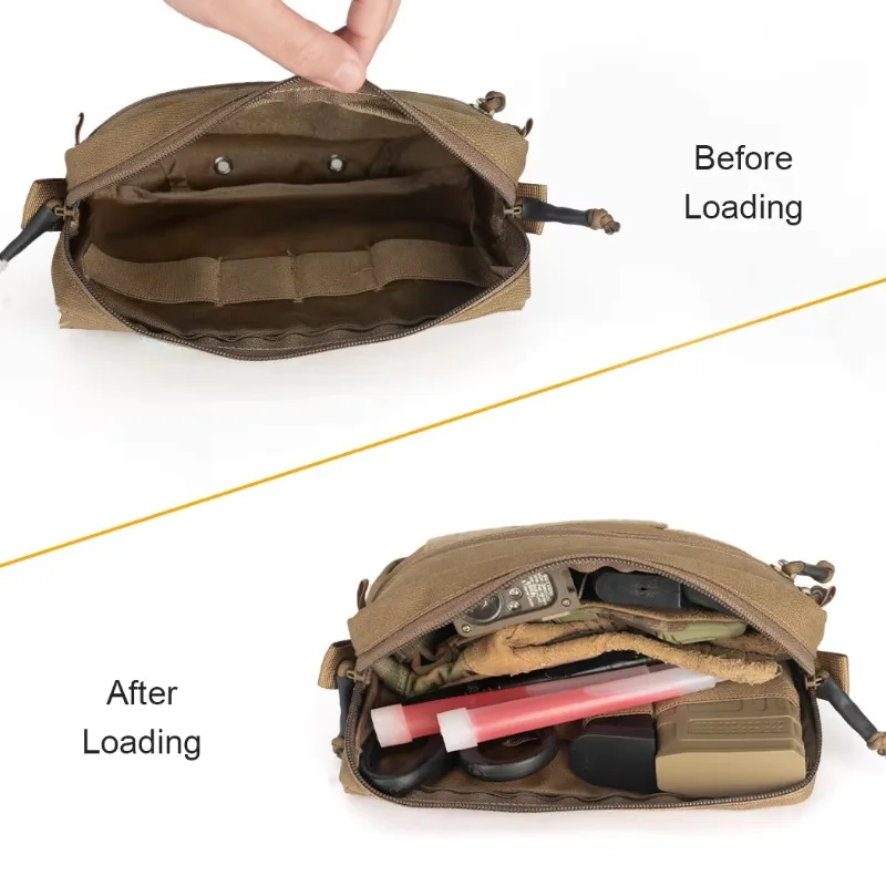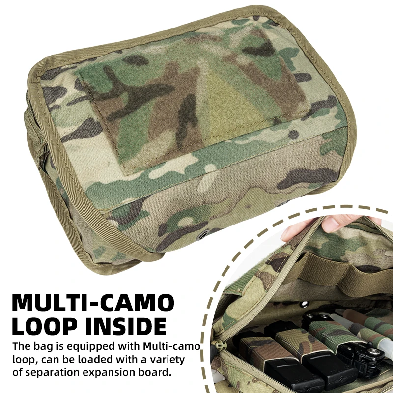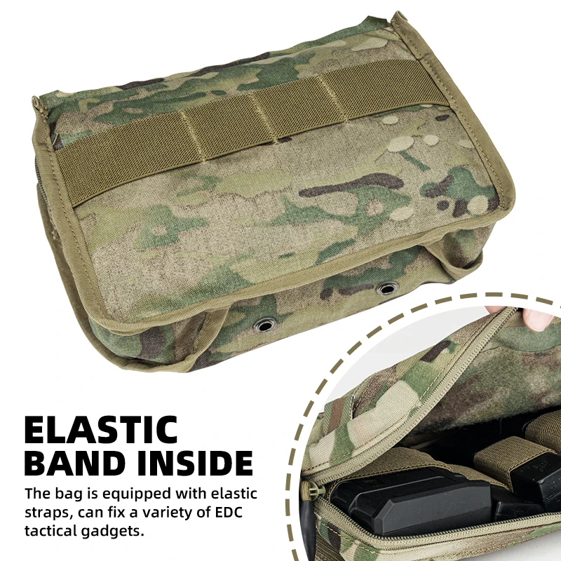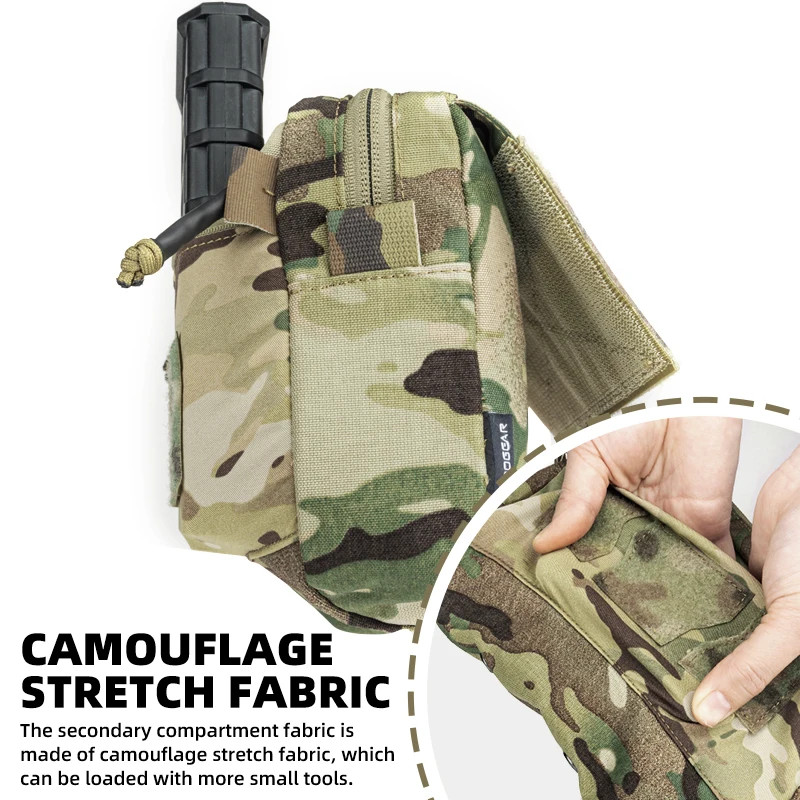 TELA ELÁSTICA DE CAMOUFLAGE: La tela del compartimento secundario está hecha de tela elástica de camuflaje, que se puede cargar con herramientas más pequeñas.