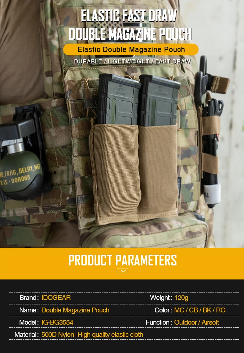 IDOGEAR Tactical 5,56 Magazine Pouch Fast Draw MOLLE Mag Pouch Carrier Double Open Top