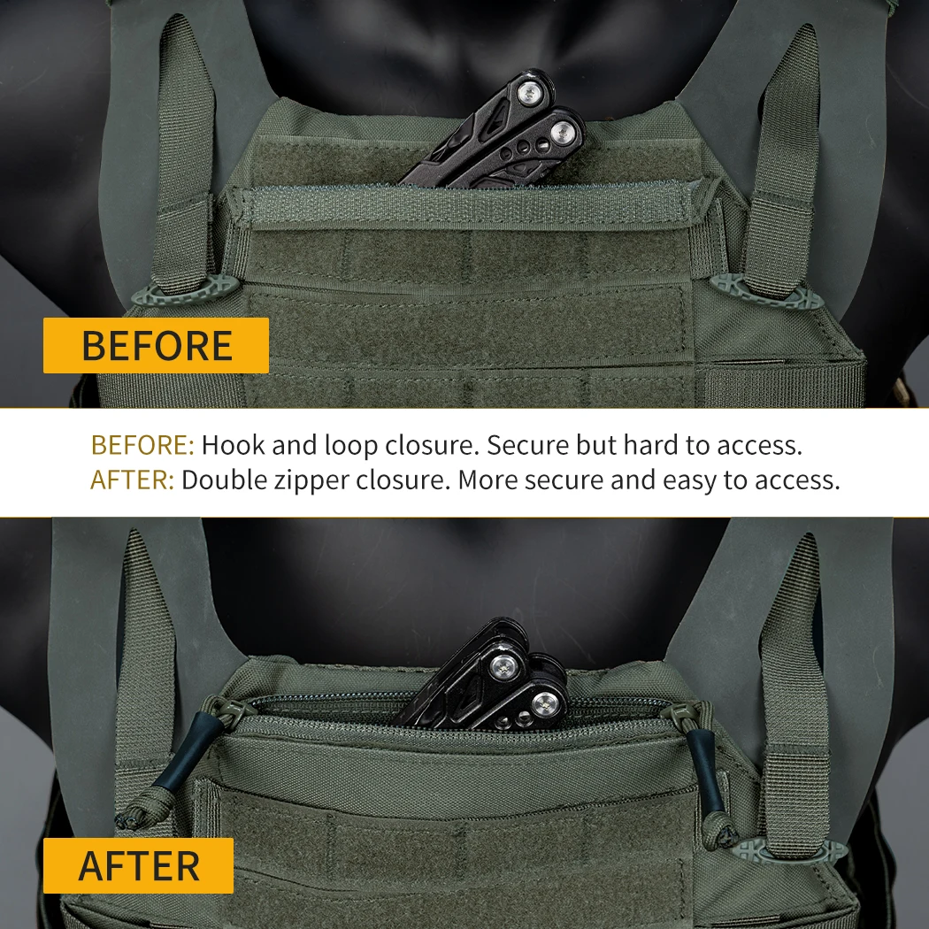 IDOGEAR Bolsa táctica con doble cremallera, bolsillo de almacenamiento, funda con cremallera para chaleco JPC2.0 CPC AVS