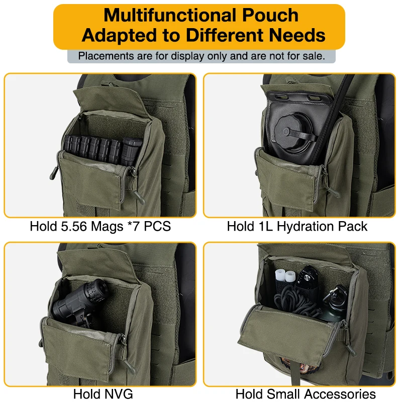 Parte posterior con sistema MOLLE, se puede conectar a cualquier engranaje Molle
