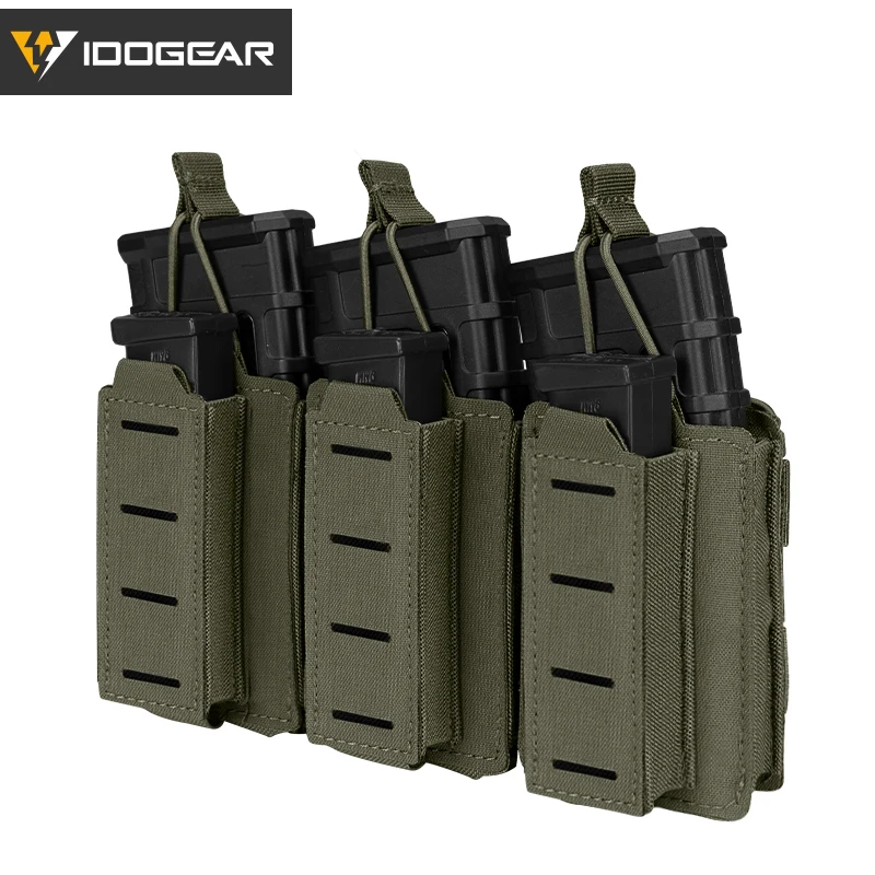 Idogear-bolsa táctica Lsr 9mm 556 Mag, Triple Mag Carrier Molle, Airsoft