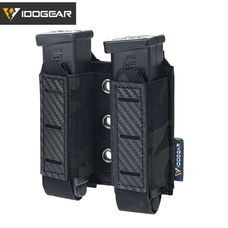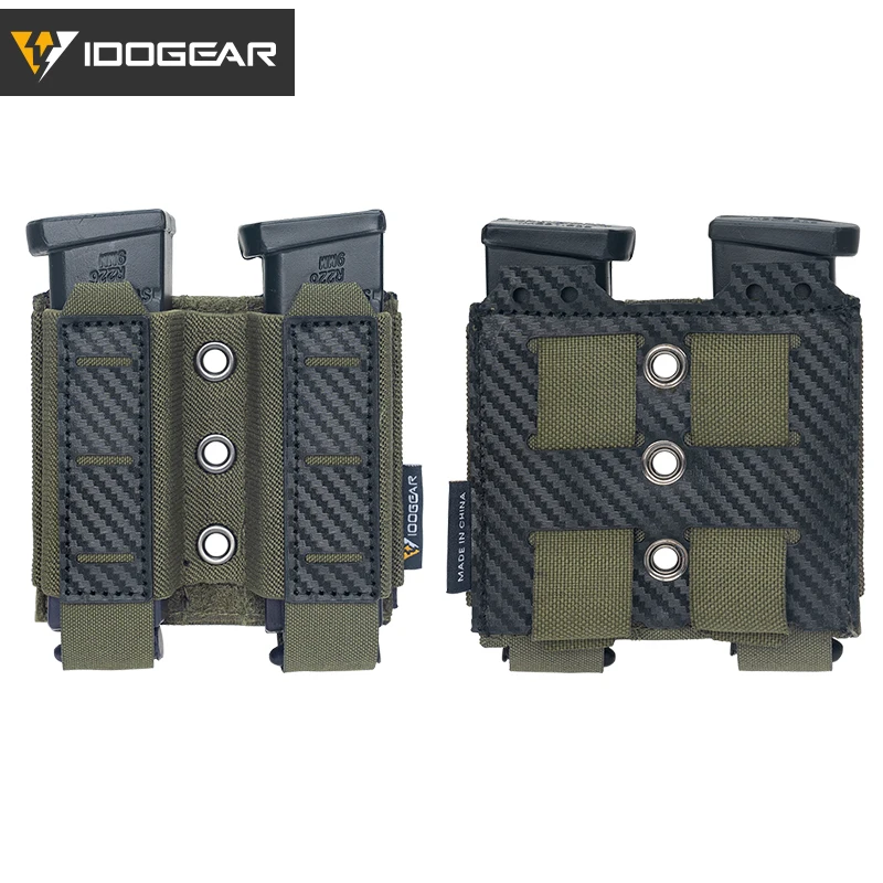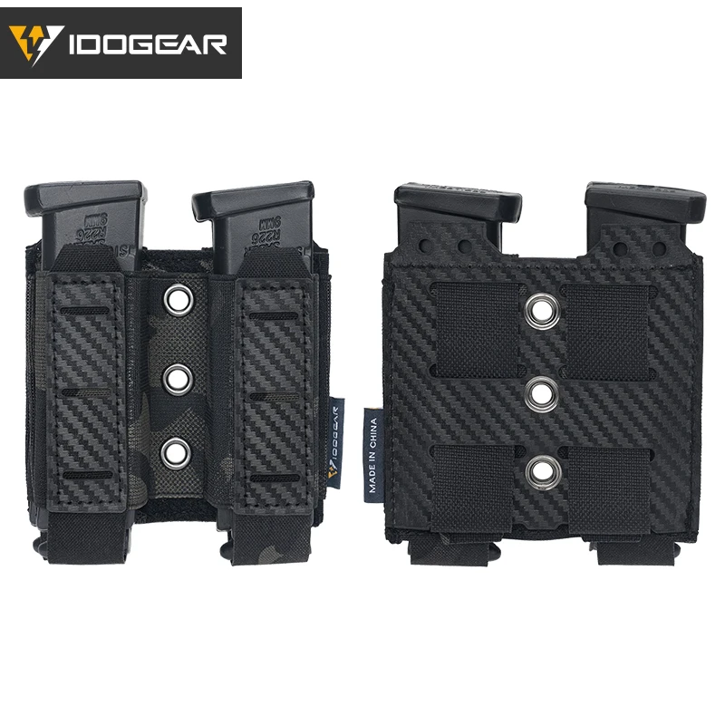 IDOGEAR Tactical Mag Pouch 9mm Double Mag Carrier Carbon Fiber MOLLE Pouch Camo 3590
