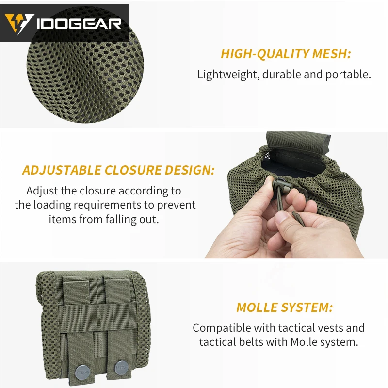 IDOGEAR Bolsa táctica de malla MOLLE, bolsa de caída, soporte plegable para reciclaje Mag3595