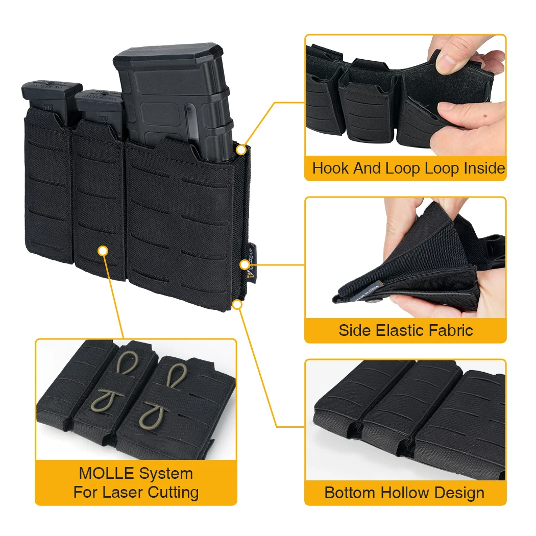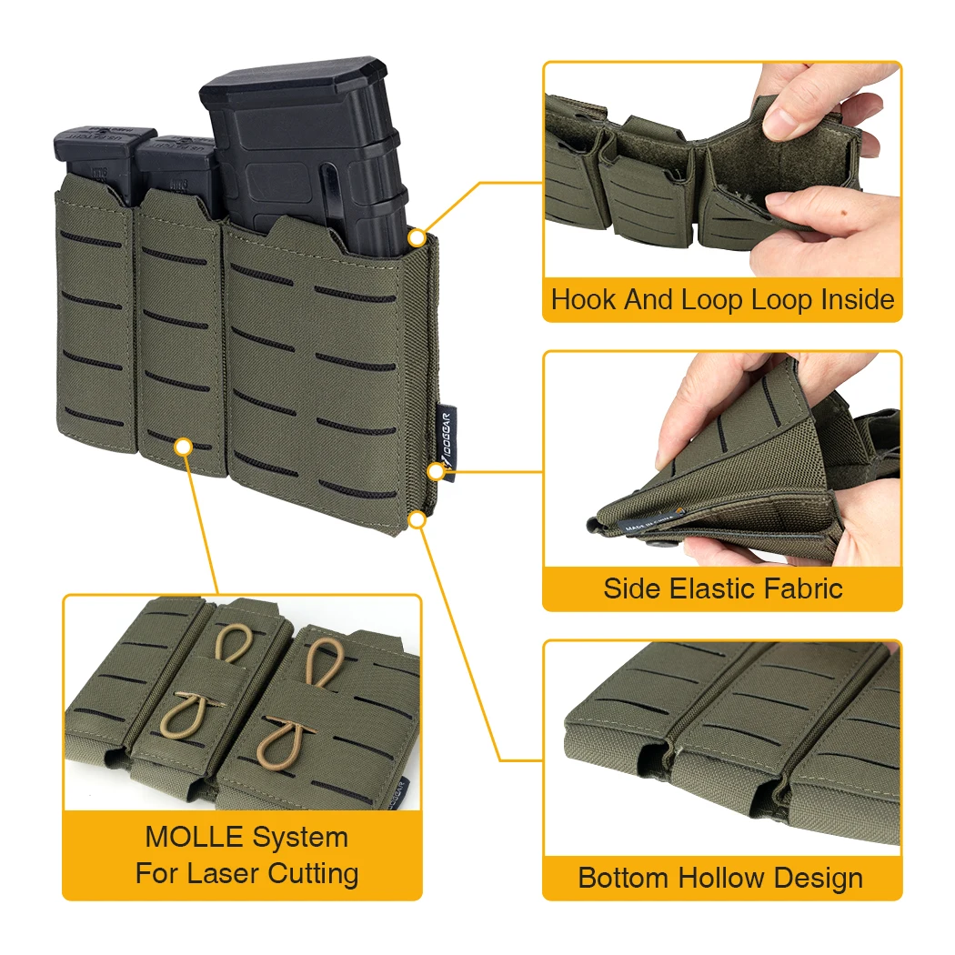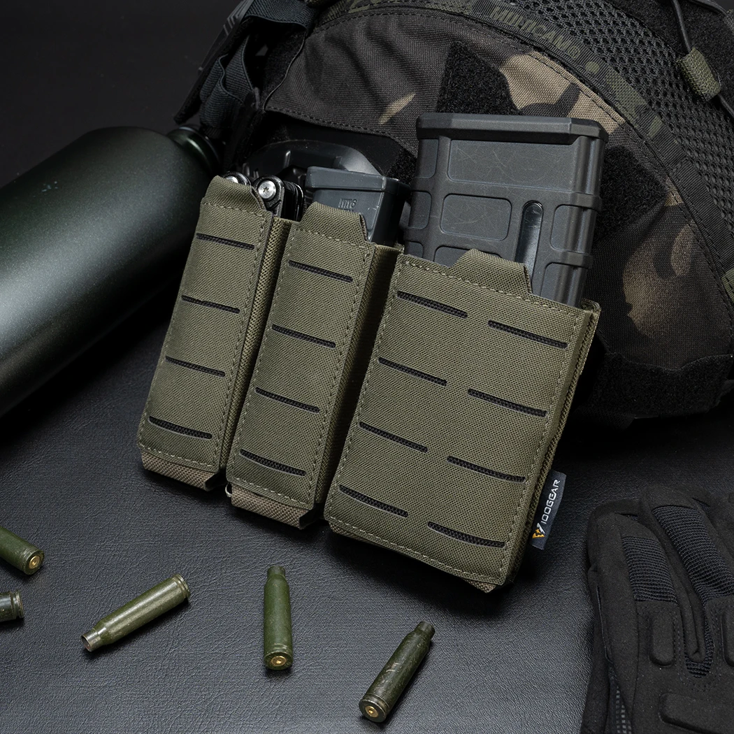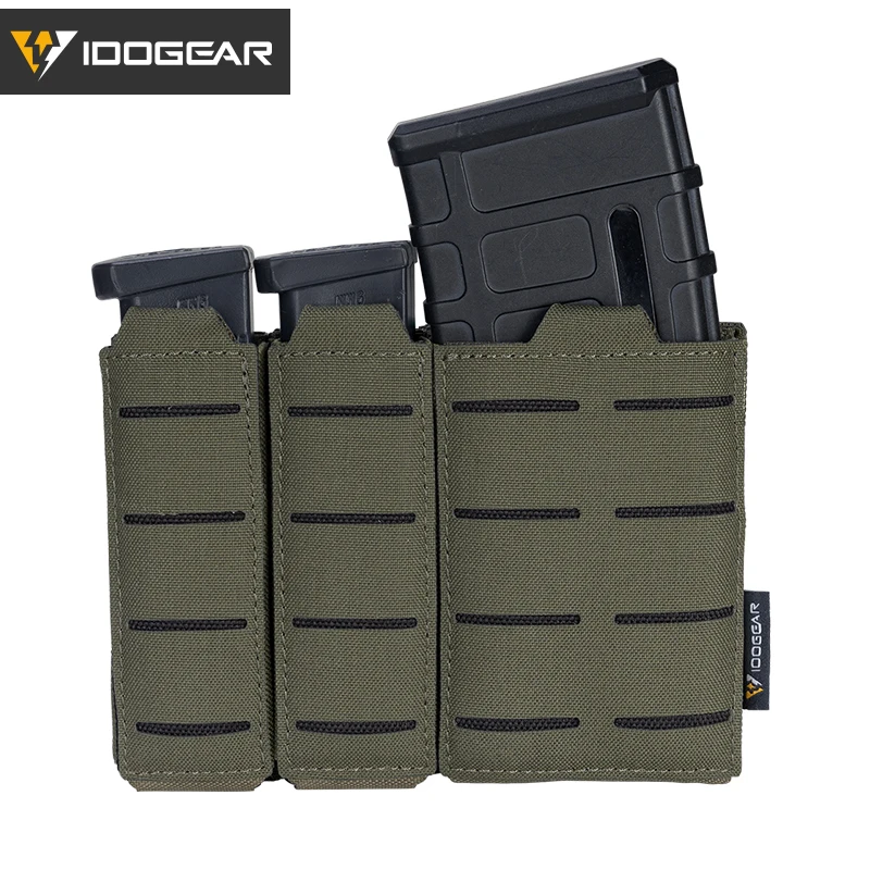 IDOGEAR Bolsa táctica Triple Mag Carrier 9mm 5.56 Bolsa Molle cortada con láser MC 3586