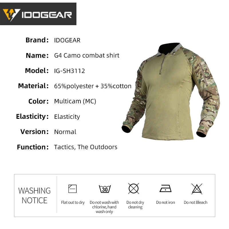 Camisa militar IDOGEAR G4 con coderas Camisa táctica de combate Camo Multicam