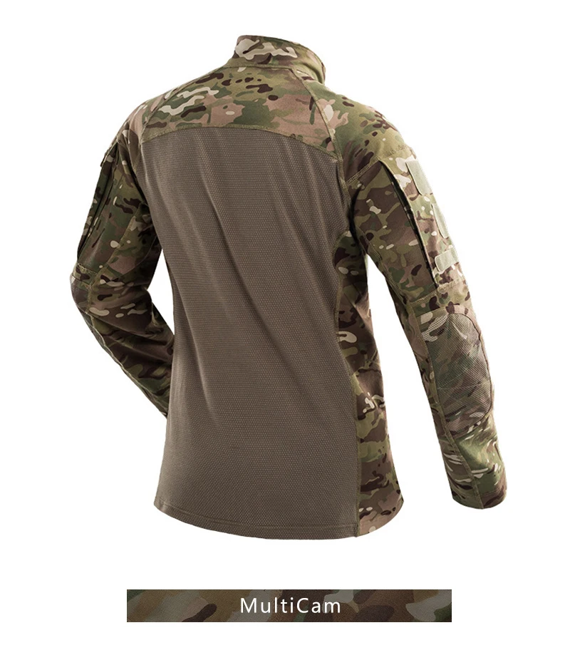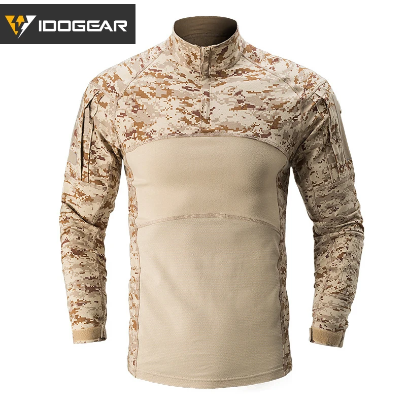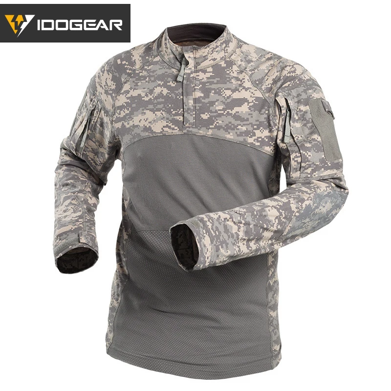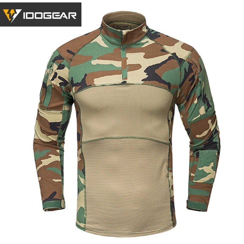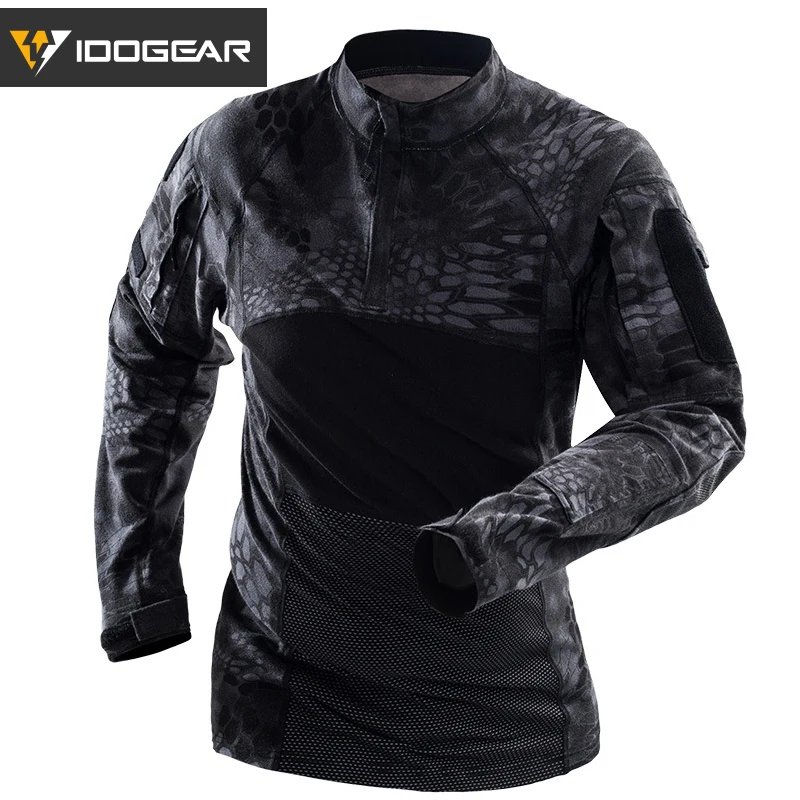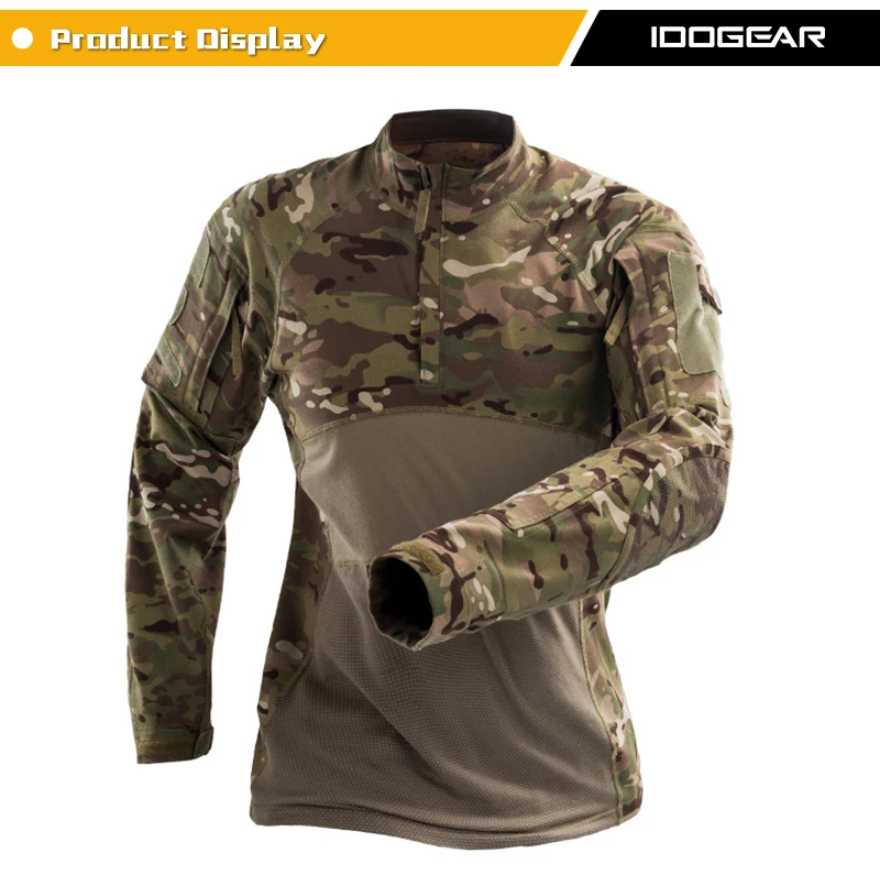 IDOGEAR Camisa táctica de manga larga Top Camo Airsoft Deportes al aire libre Camisa de combate Negro MultiCam Camo 3105