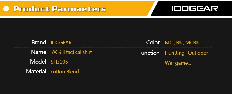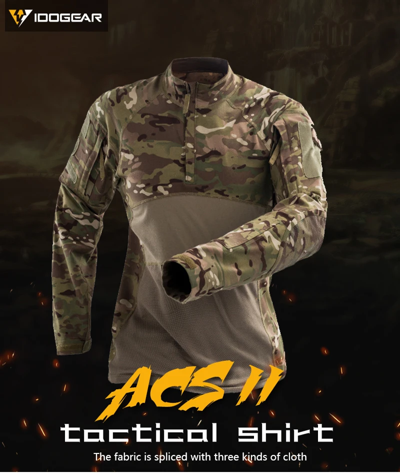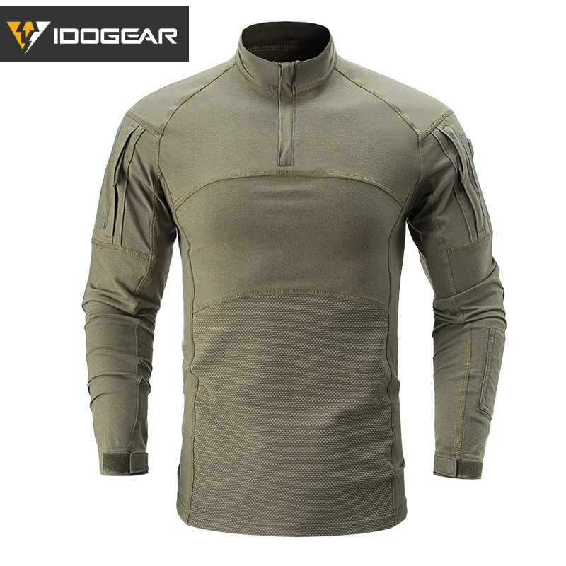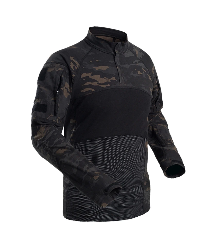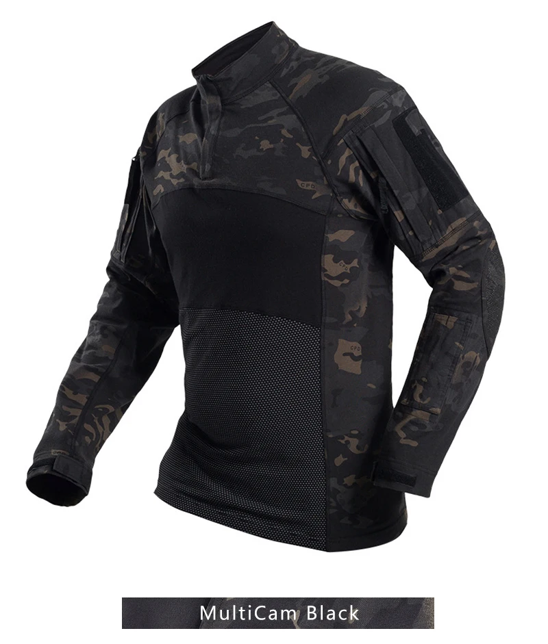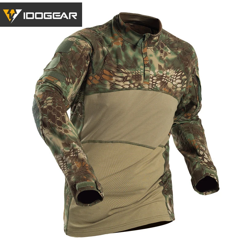 IDOGEAR Camisa táctica de manga larga Top Camo Airsoft Deportes al aire libre Camisa de combate Negro MultiCam Camo 3105