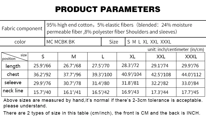 Talla: S/M/L/XL/XXL/XXXL