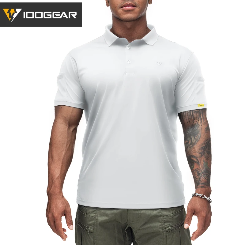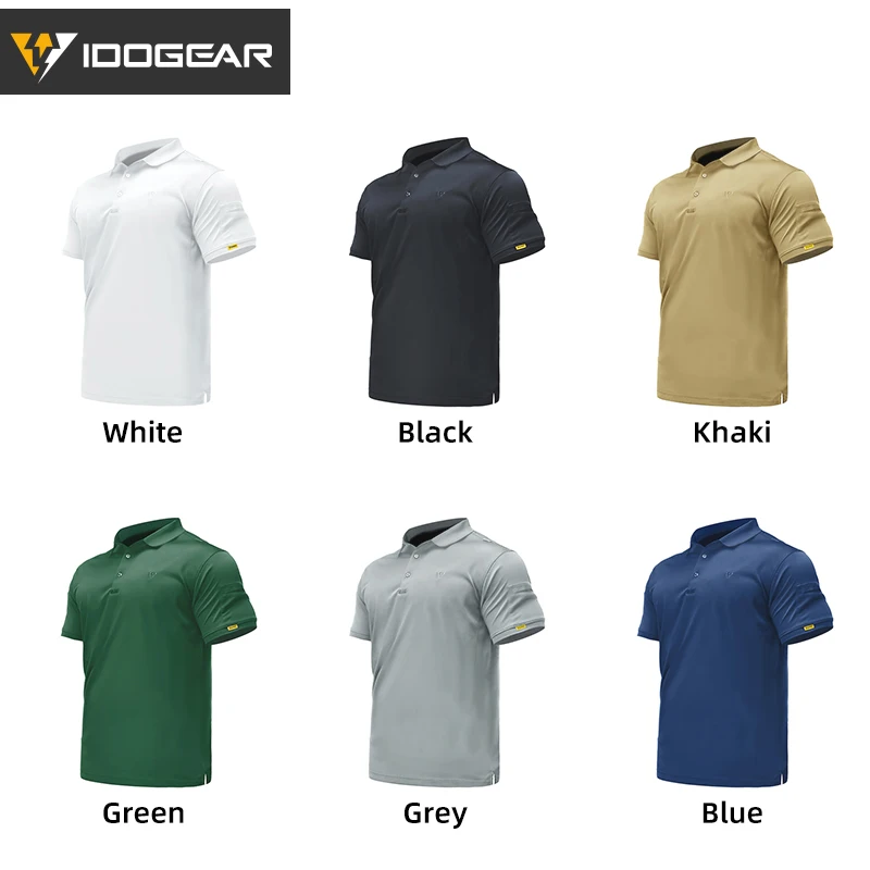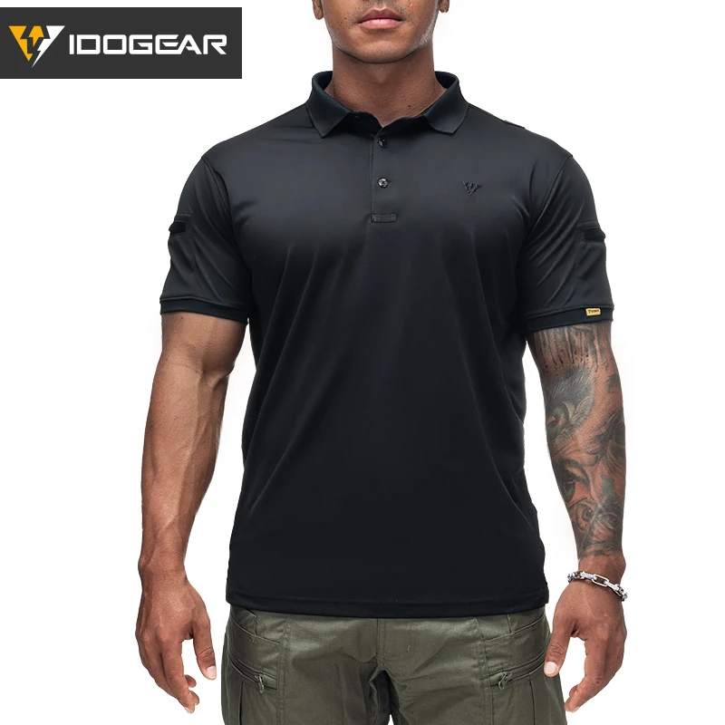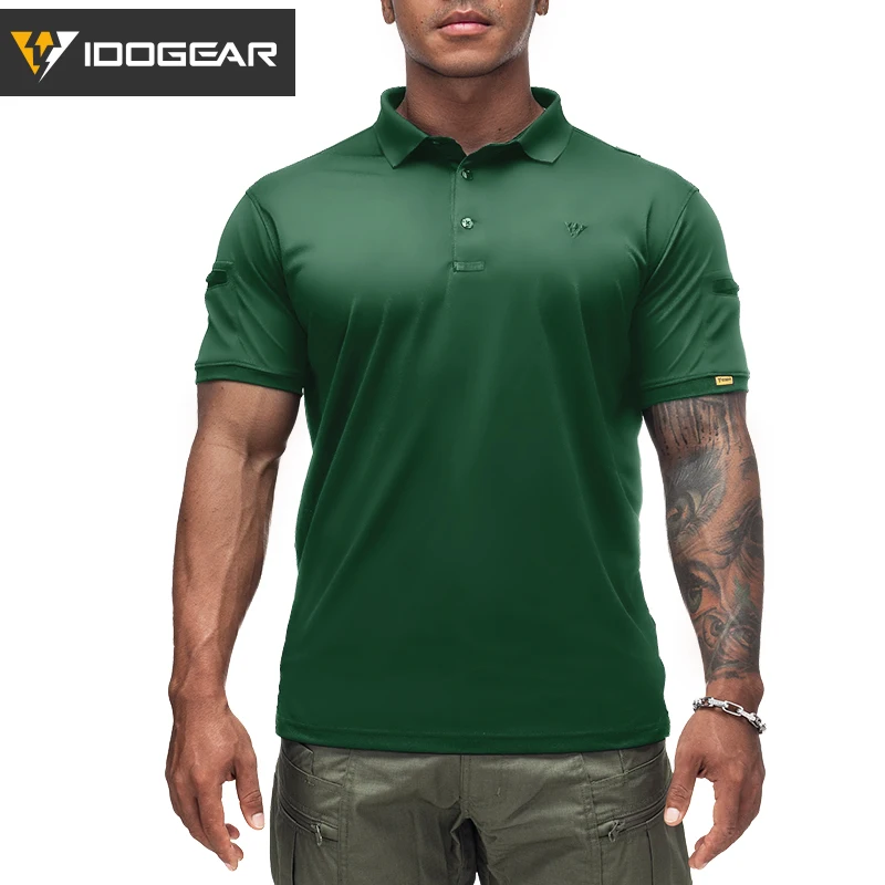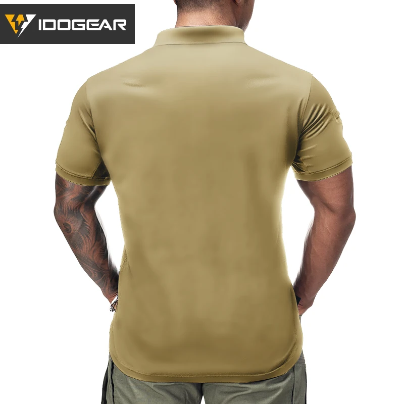 IDOGEAR-Camiseta táctica de manga corta, camisa lisa de secado rápido, Top transpirable con cuello de solapa 3113