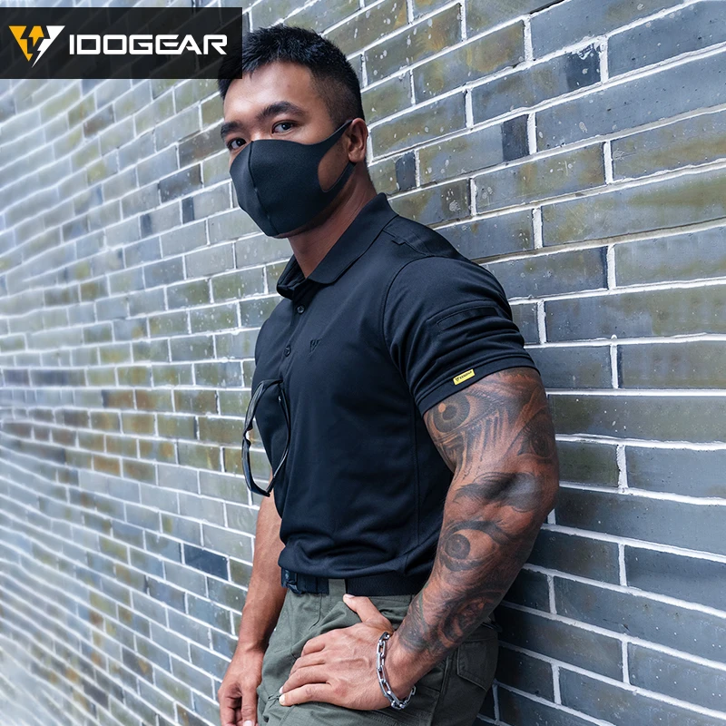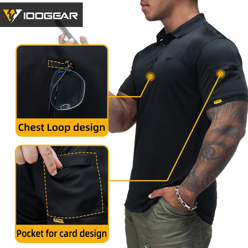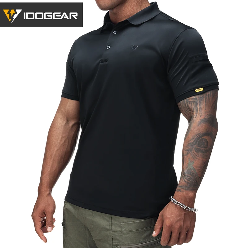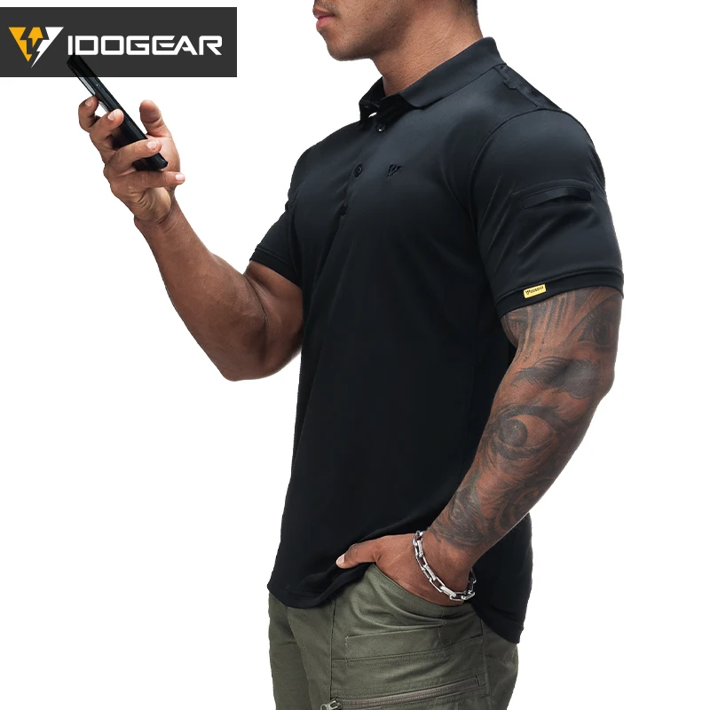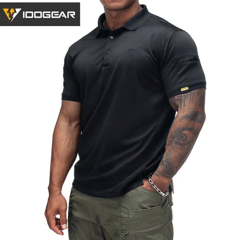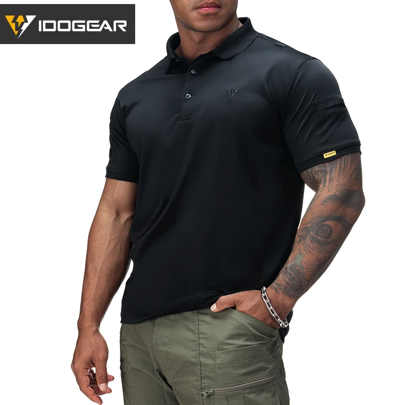 IDOGEAR-Camiseta táctica de manga corta, camisa lisa de secado rápido, Top transpirable con cuello de solapa 3113