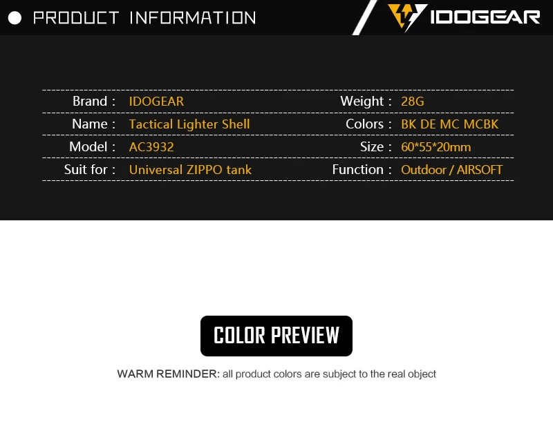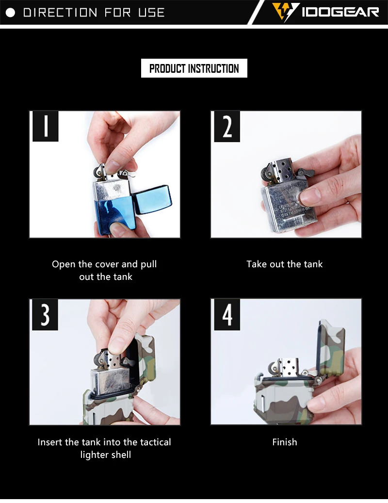 Carcasa de encendedor de aceite IDOGEAR para tanque interno Zippo carcasa de contenedor de armadura Anti-caída ligera Camo