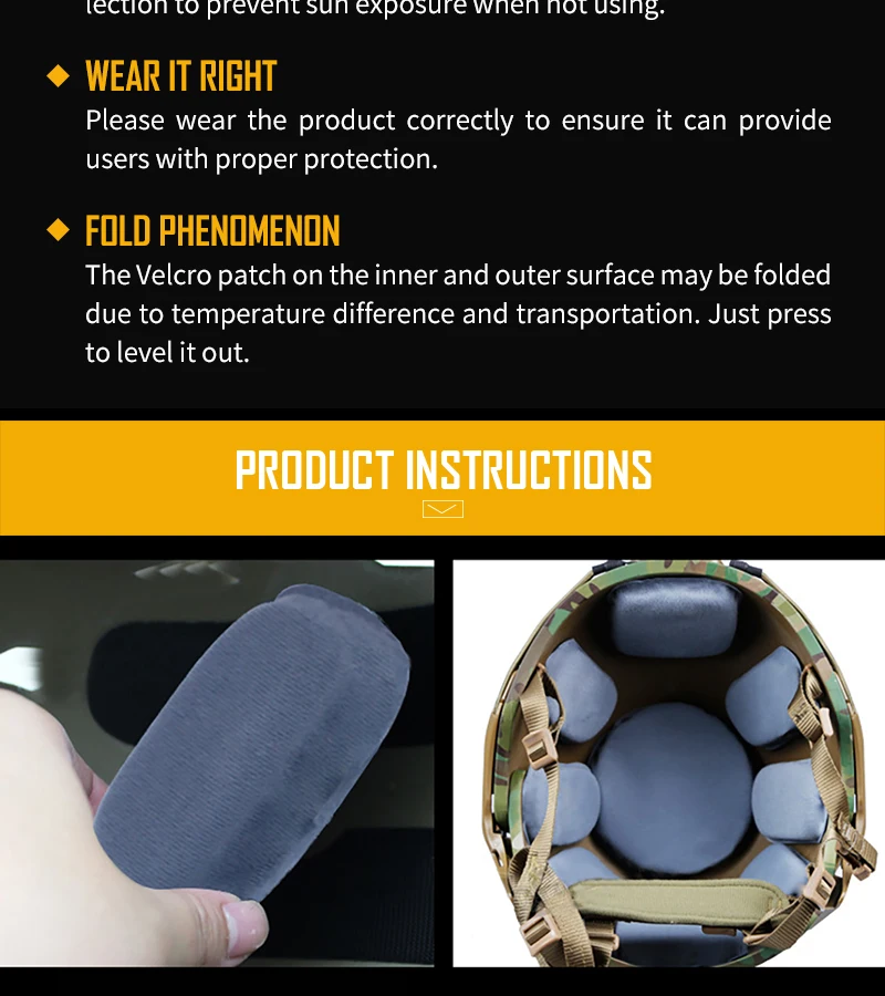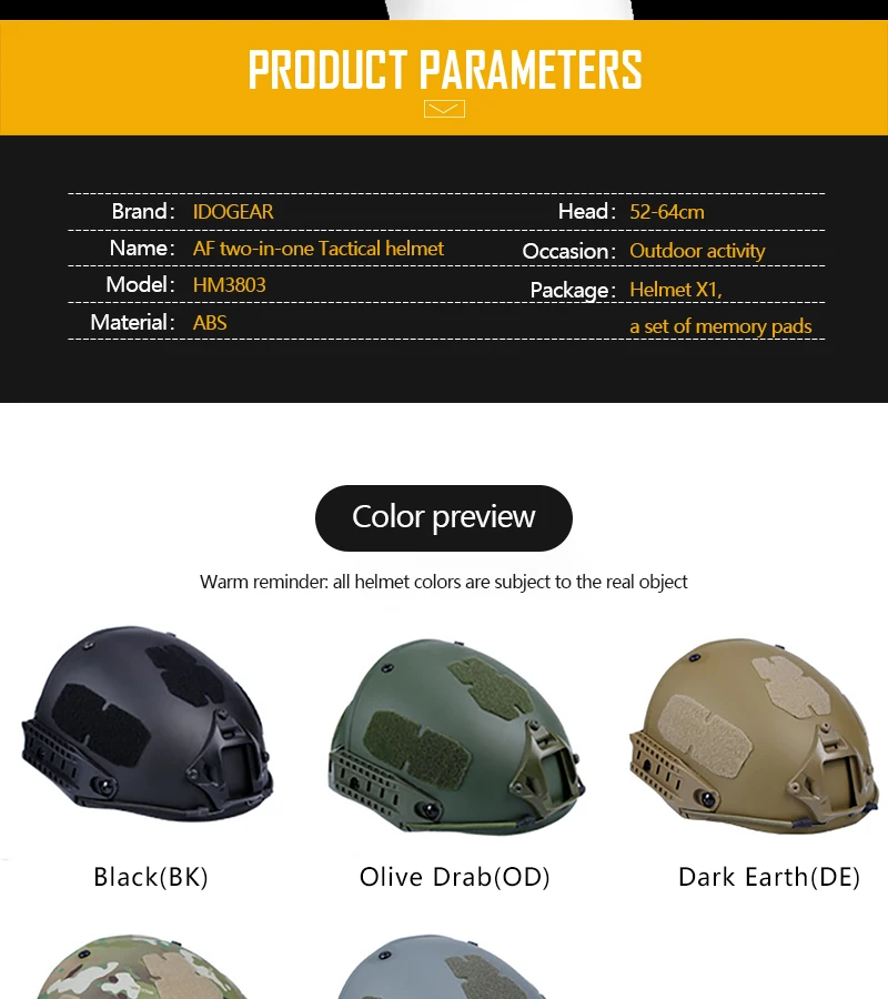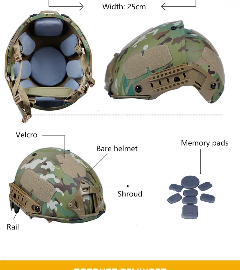 Paquete: un casco con cubierta y riel, cinta de gancho y bucle x5 piezas, almohadilla x 9 piezas (no incluye otros engranajes)