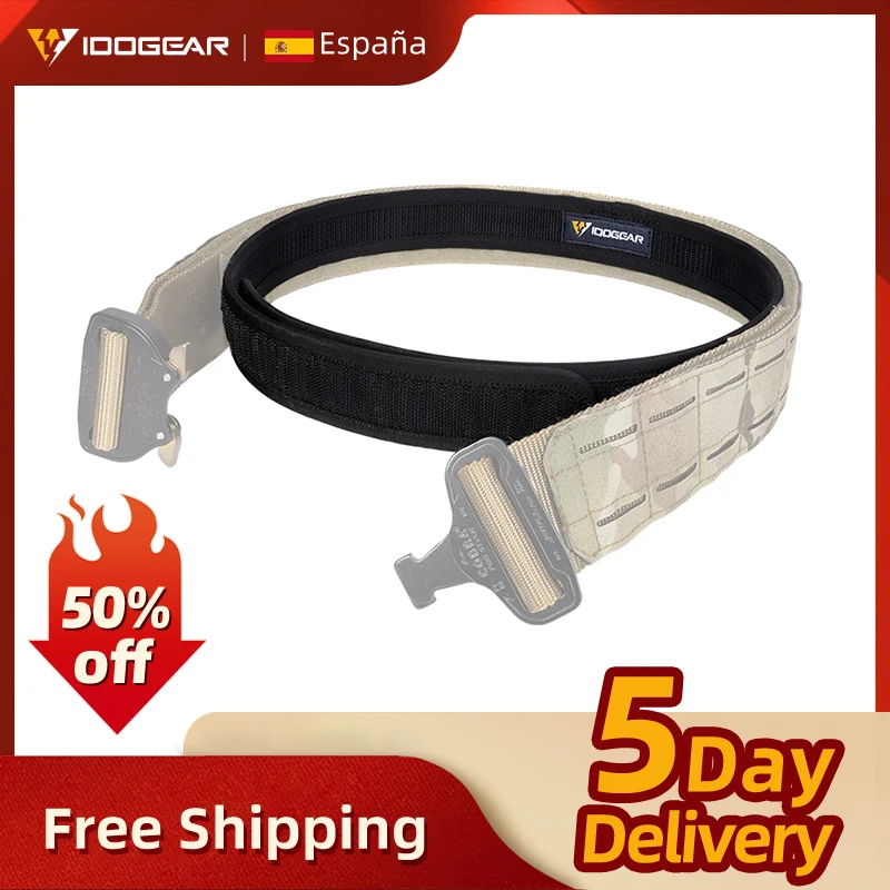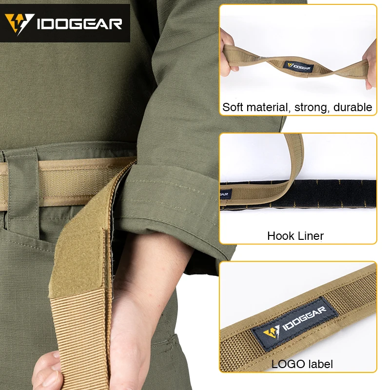 IDOGEAR Cinturón táctico Cinturones para hombre Cinturón interior Forro de gancho Cinturón de 1,7"