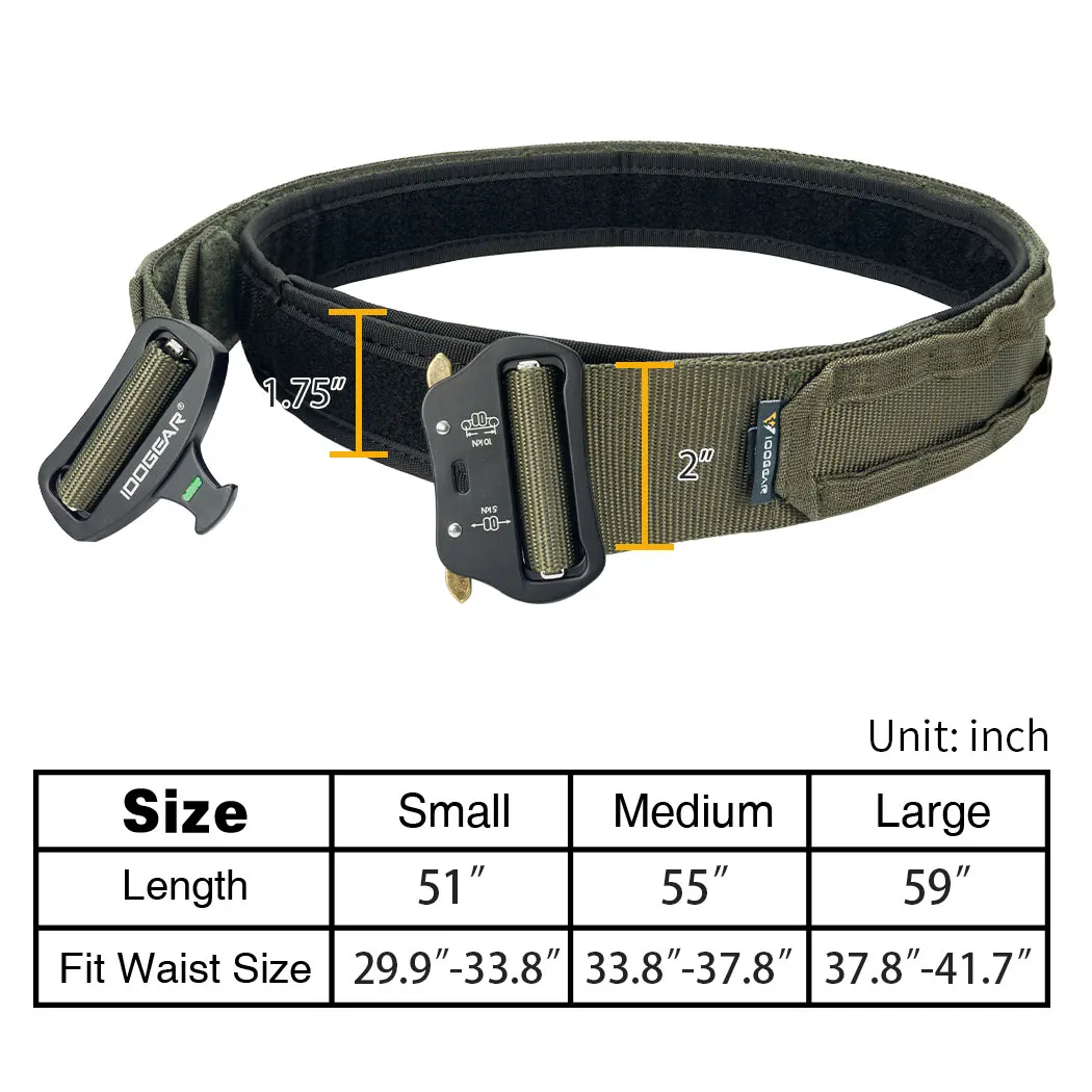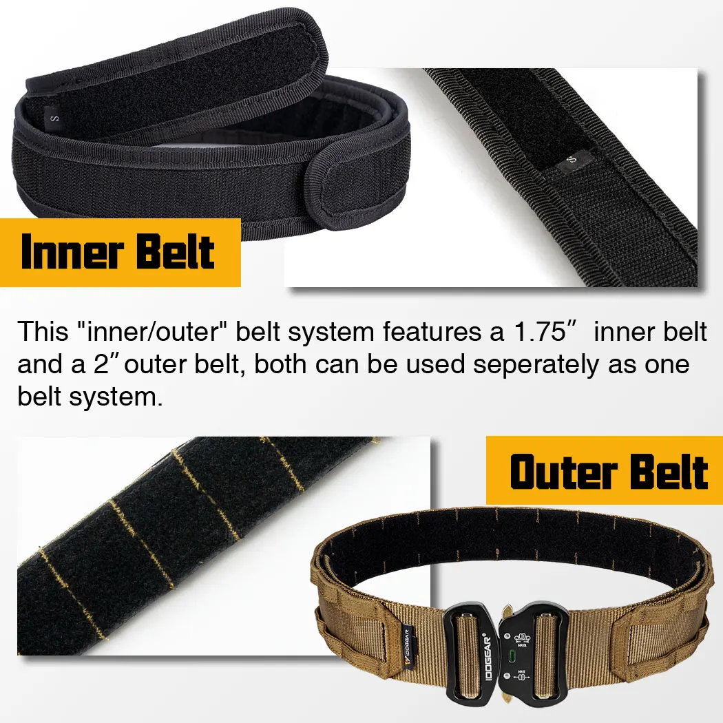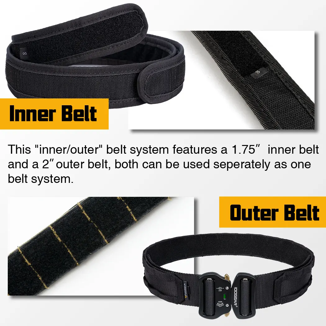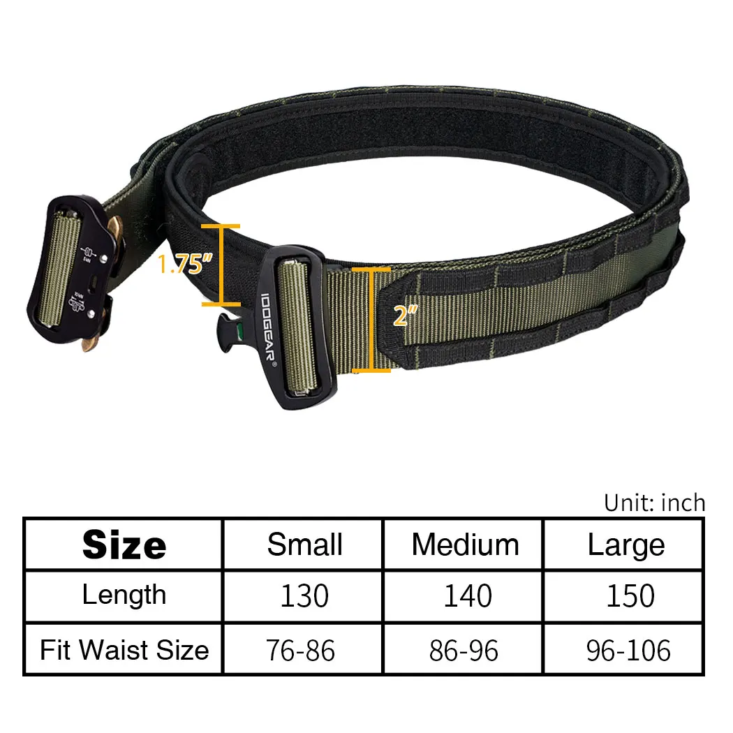 IDOGEAR Two-in-One 2" Tactical Belt Combat Quick Release Metal Buckle Mens MOLLE Belts