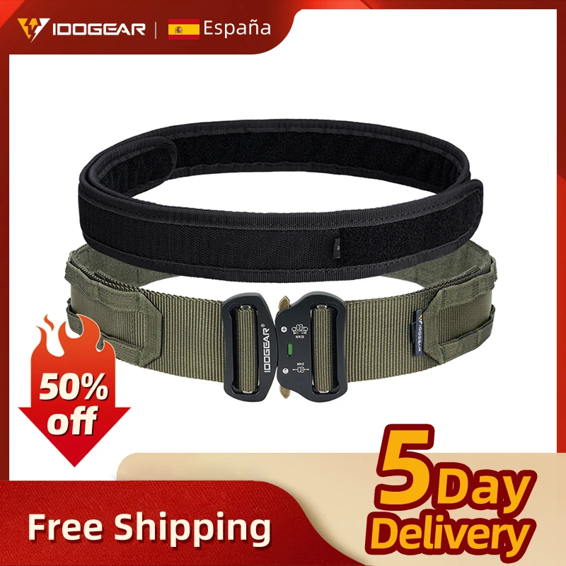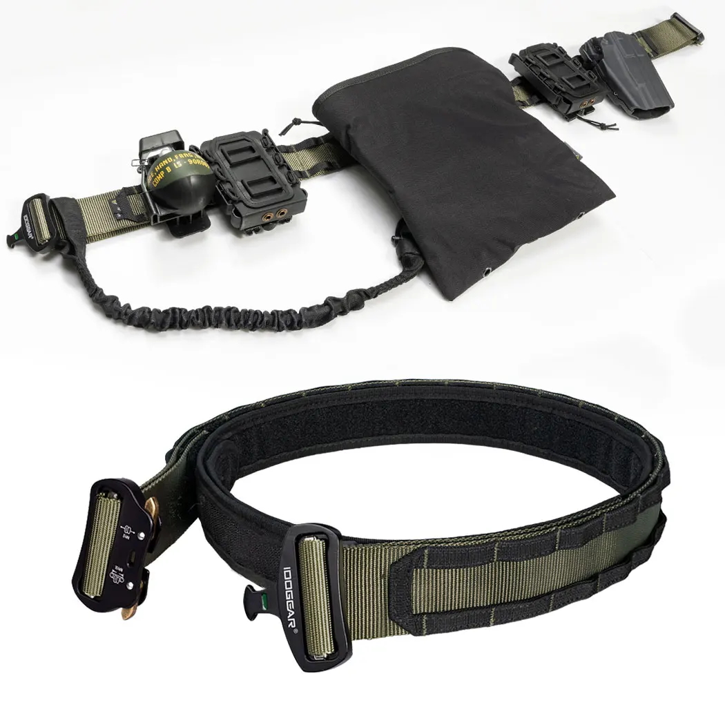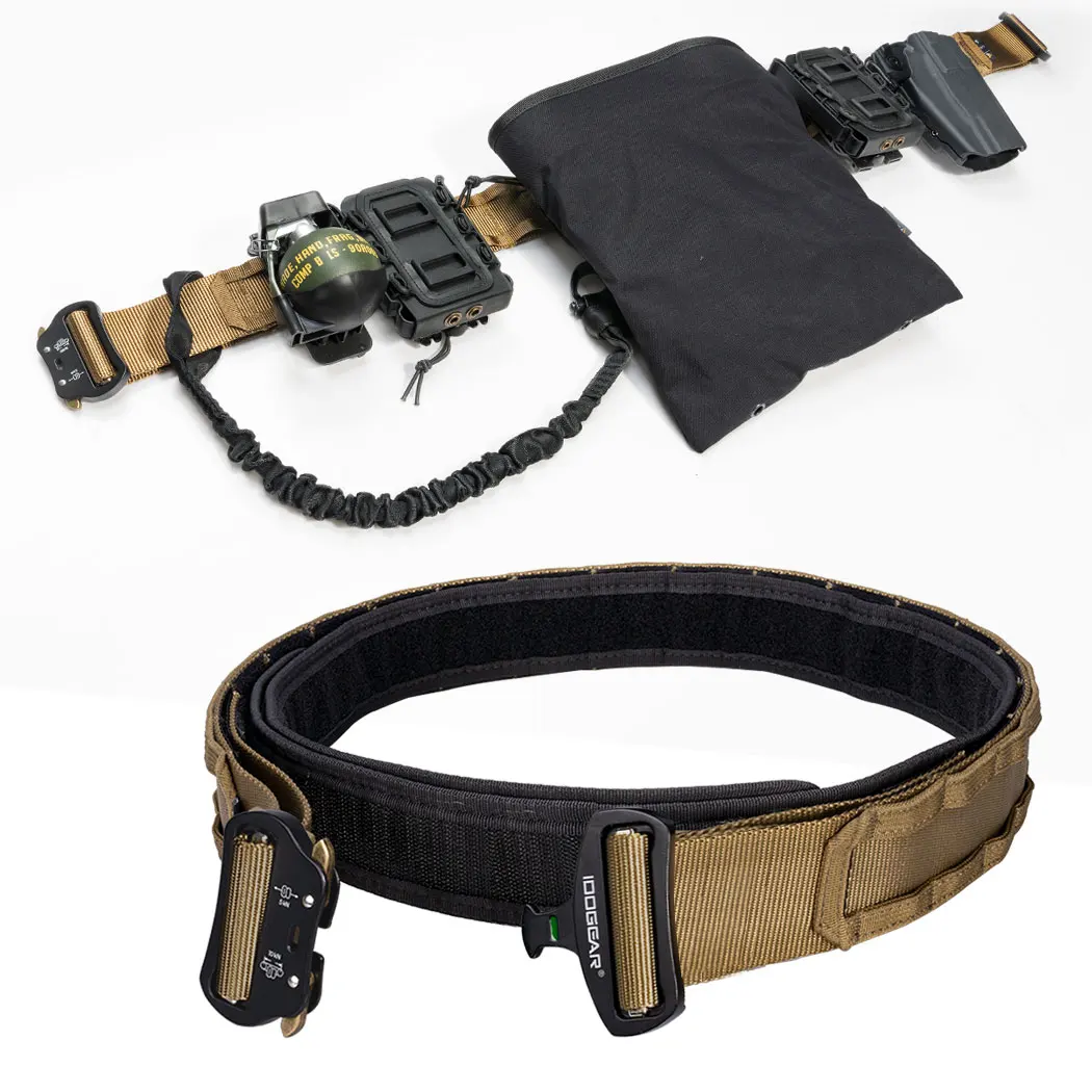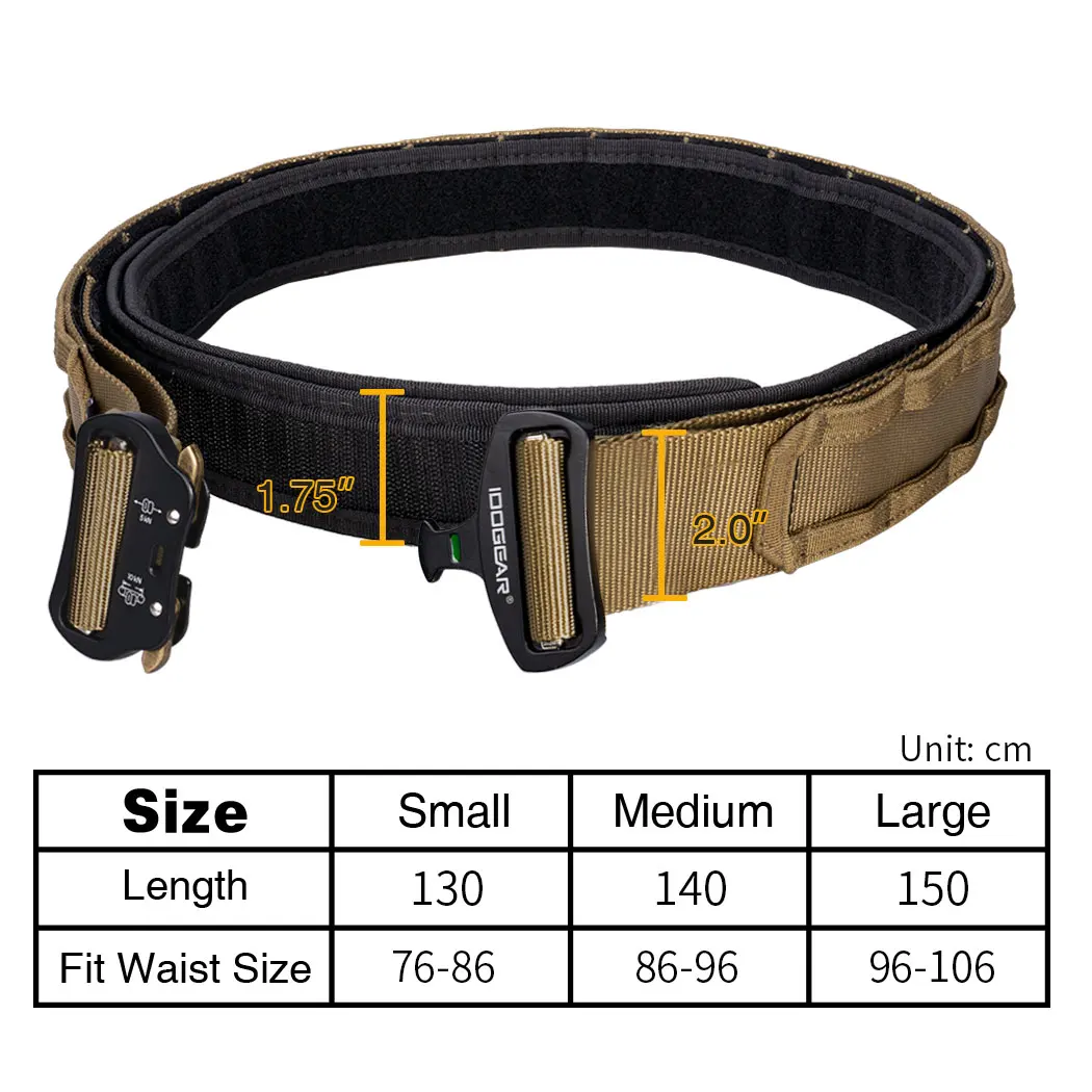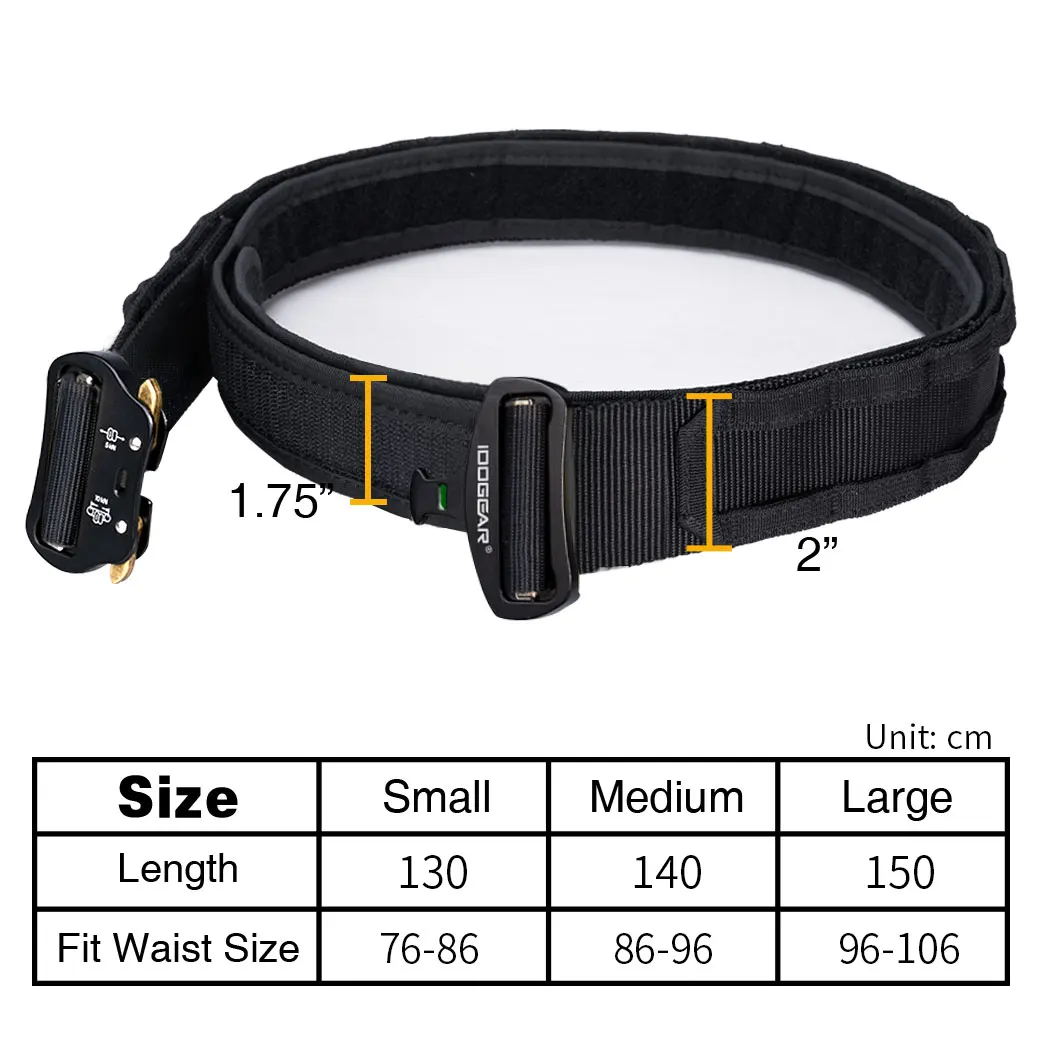 IDOGEAR Two-in-One 2" Tactical Belt Combat Quick Release Metal Buckle Mens MOLLE Belts