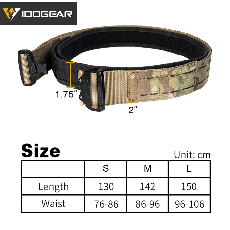 IDOGEAR 2 "Cinturón táctico Hebilla de metal Láser MOLLE Cinturones para hombre Liberación rápida