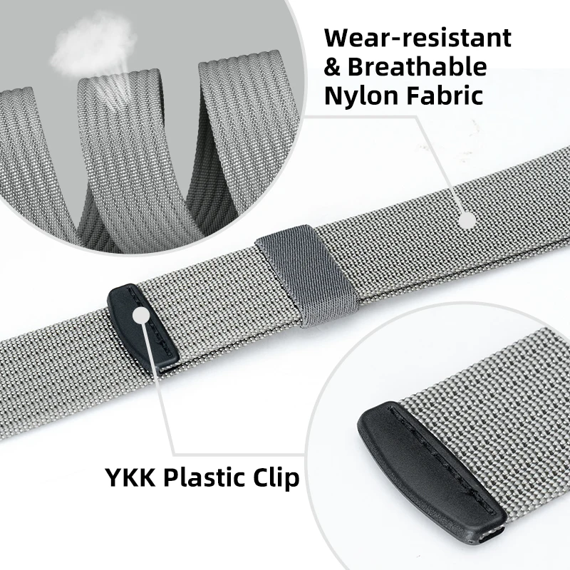 [Ajuste preciso]Puedes ajustar con precisión tu cinturón para lograr el ajuste perfecto.Hebilla automática extraíble, sin agujeros en el cinturón.Si la correa es demasiado larga para usted, puede recortarla para que se ajuste a su talla.También puedes asegurar el exceso de cola del cinturón de nailon con el lazo.