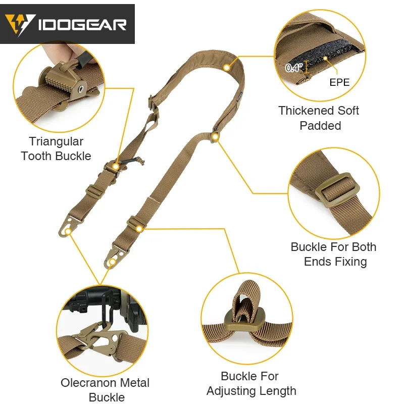 IdOGEAR eslinga táctica de 2 puntos, correa modular de combate, eslinga, accesorio de caza de tracción ajustable rápido